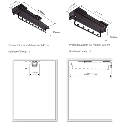 Pull Out Hanger Metal, Sliding Wardrobe Closet Rod Hanging Rod, for Closet/shallow cabinet/wardrobe/narrow cabinet, Closet Organizer Rack for Pants and Coat(47cm)