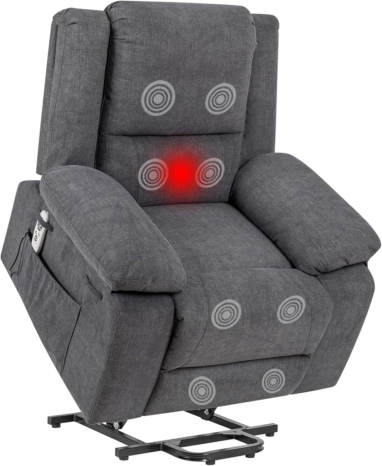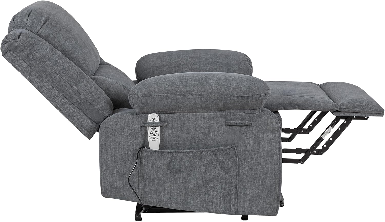 Solace Electric Power Recliner Chair with Massage and Heatin - Dark Grey