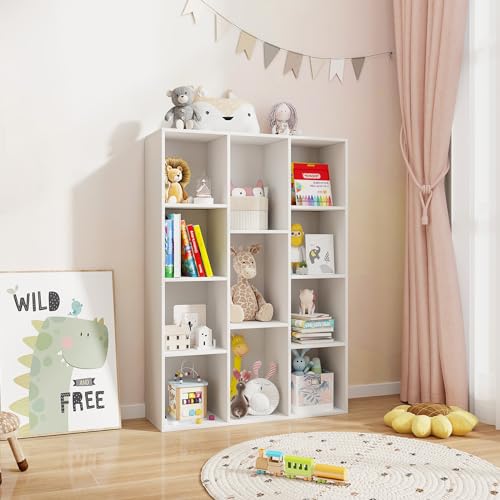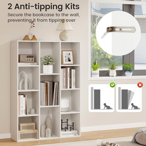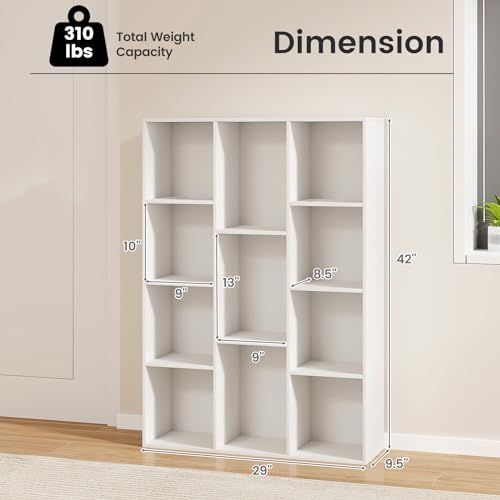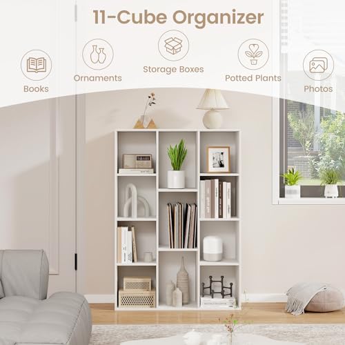 Giantex 11 Cube Reversible Bookcase, Wooden Freestanding Open Bookshelf with Anti-tip Kits, Modern Storage Organizer Cabinet, Wood Display Book Shelf for Living Room, Bedroom, Playroom, White