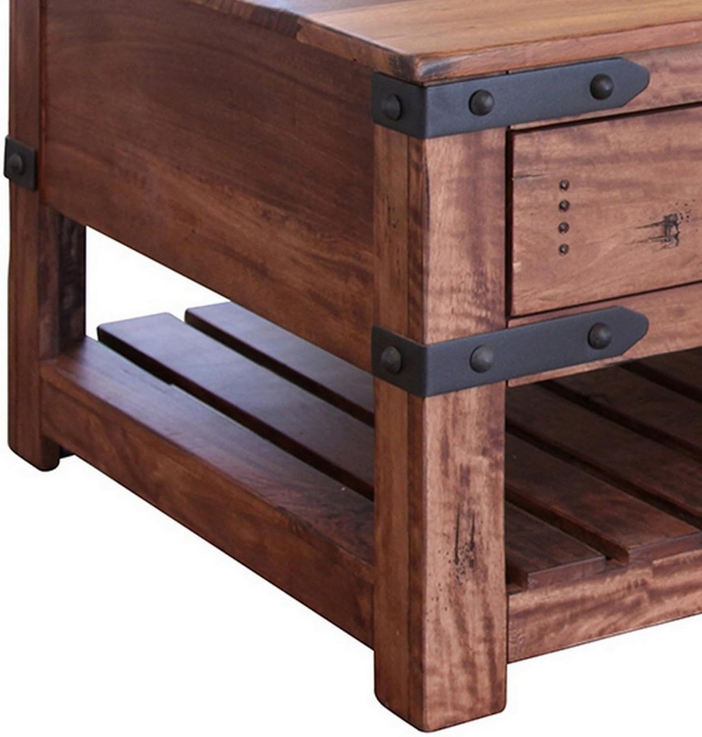 Benjara Umey 50 Inch 4 Drawer Coffee Table, Slatted Bottom Shelf, Solid Wood, Brown and Black