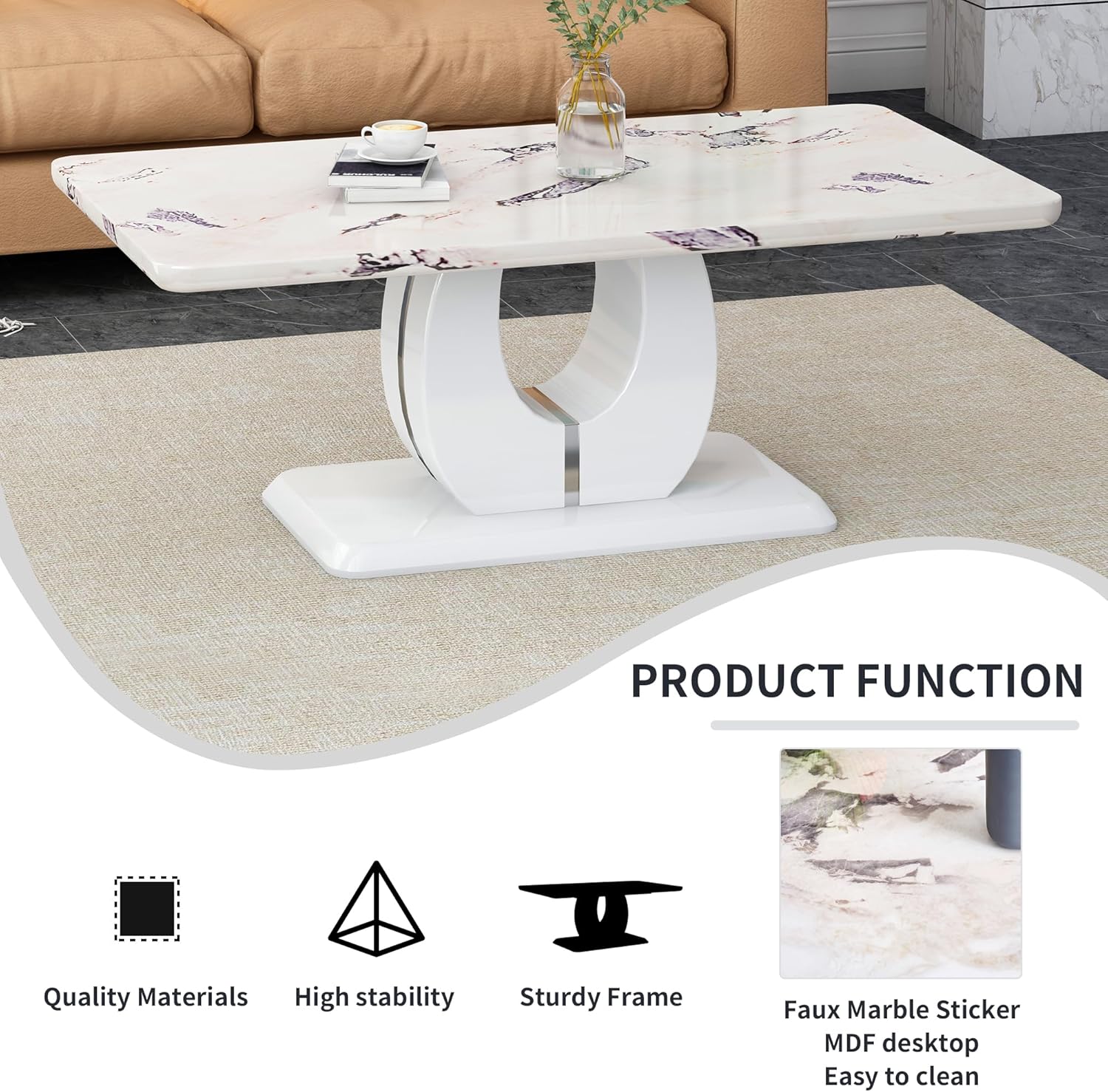 47 Inch Modern Marble Coffee Table for Living Room. Rectangular Luxury Center Table .Sleek Living Room Table,Accent Cocktail Table for Living Room, Office…