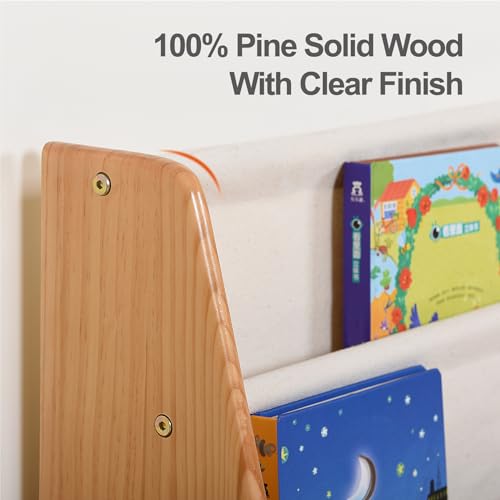 KRAND 4-Layer Kids Wooden Bookshelf, 4-Tier Layer Sling Bookcase, Baby Storage Book Rack,Toy Organizer Cabinet, Books Display for Playroom Livingroom Toddler Room Nursery and Classroom (Natural)