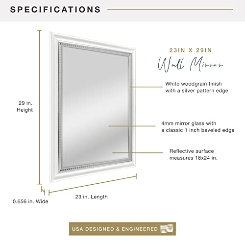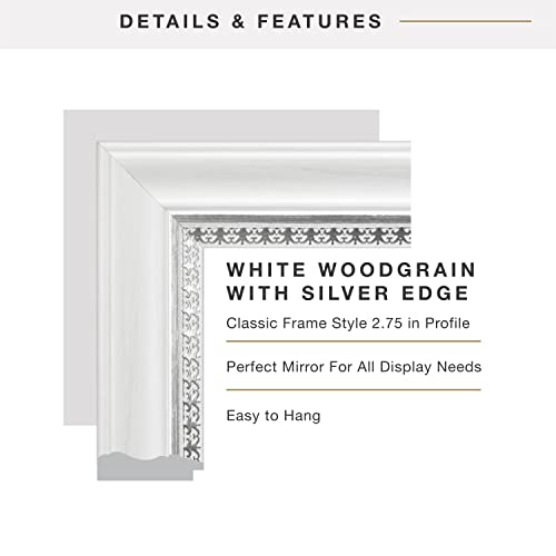 MCS 16" x 20" Beveled Inch Embossed Accent Wall Mirror, 21x25 Inch Overall Size, 21 x 25 Inch, White Wood Grain with Silver Trim Finish