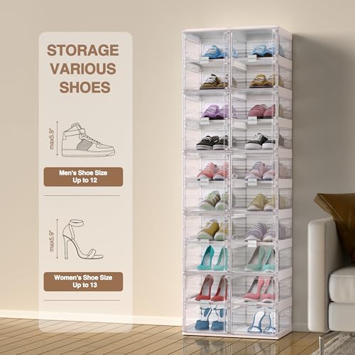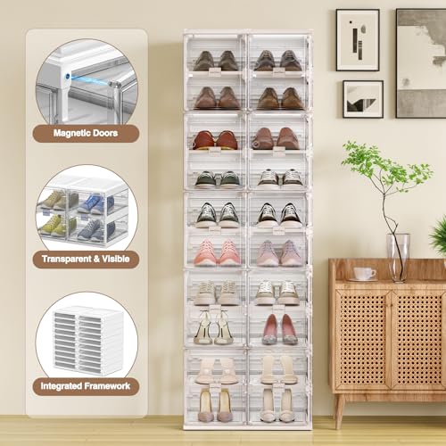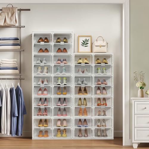 S1 Foldable Shoe Rack for Closet, Shoes Storage Organizer Cabinet for Entryway, Large Stackable Plastic Shoe Box Sneaker Storage with Clear Magnetic Door, 10 Tiers 20 Pairs