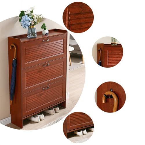 Shoe Rack Chinese Style Slim Shoe Cabinet, Freestanding Shoe Organizer with 3 Flip Drawers, Space Saving, Entryway Shoe Storage Cabinet with Side Hook Shoe Shelf(50x24x120CM)