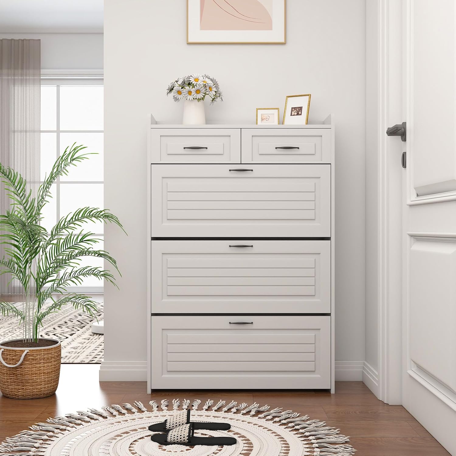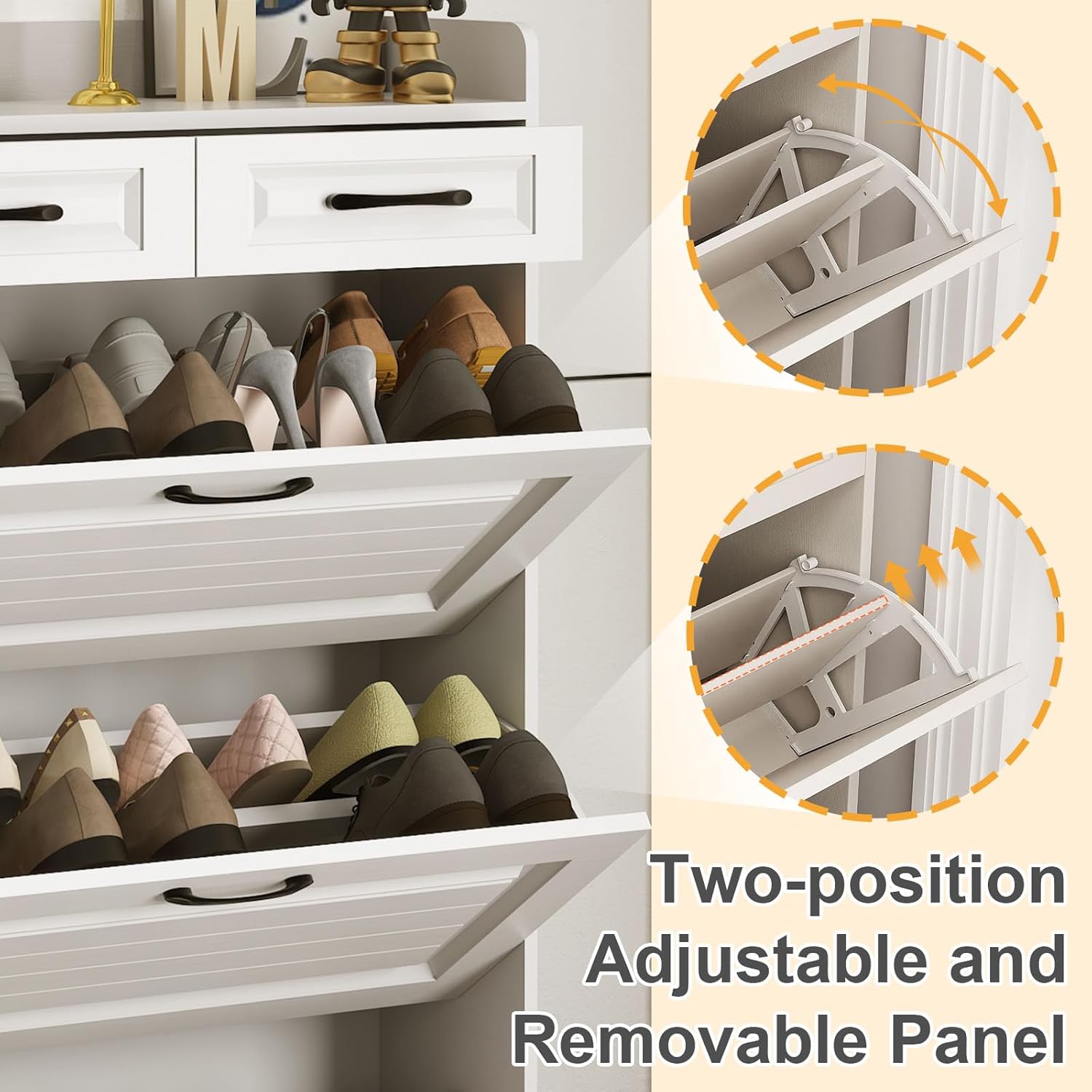 Shoe Storage Cabinet with 3 Flip Drawers, White Freestanding Storage Racks for Entryway Hidden Narrow Shoe Organizers Perfect for Heels, Boots, Slippers