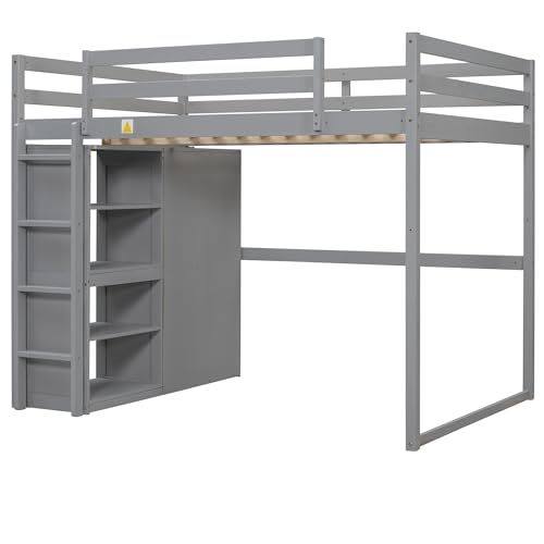 Merax Twin over Twin Bunk Bed with Slide and for Storage Staircase for Teens, Boys or Girls, No Box Sping Needed