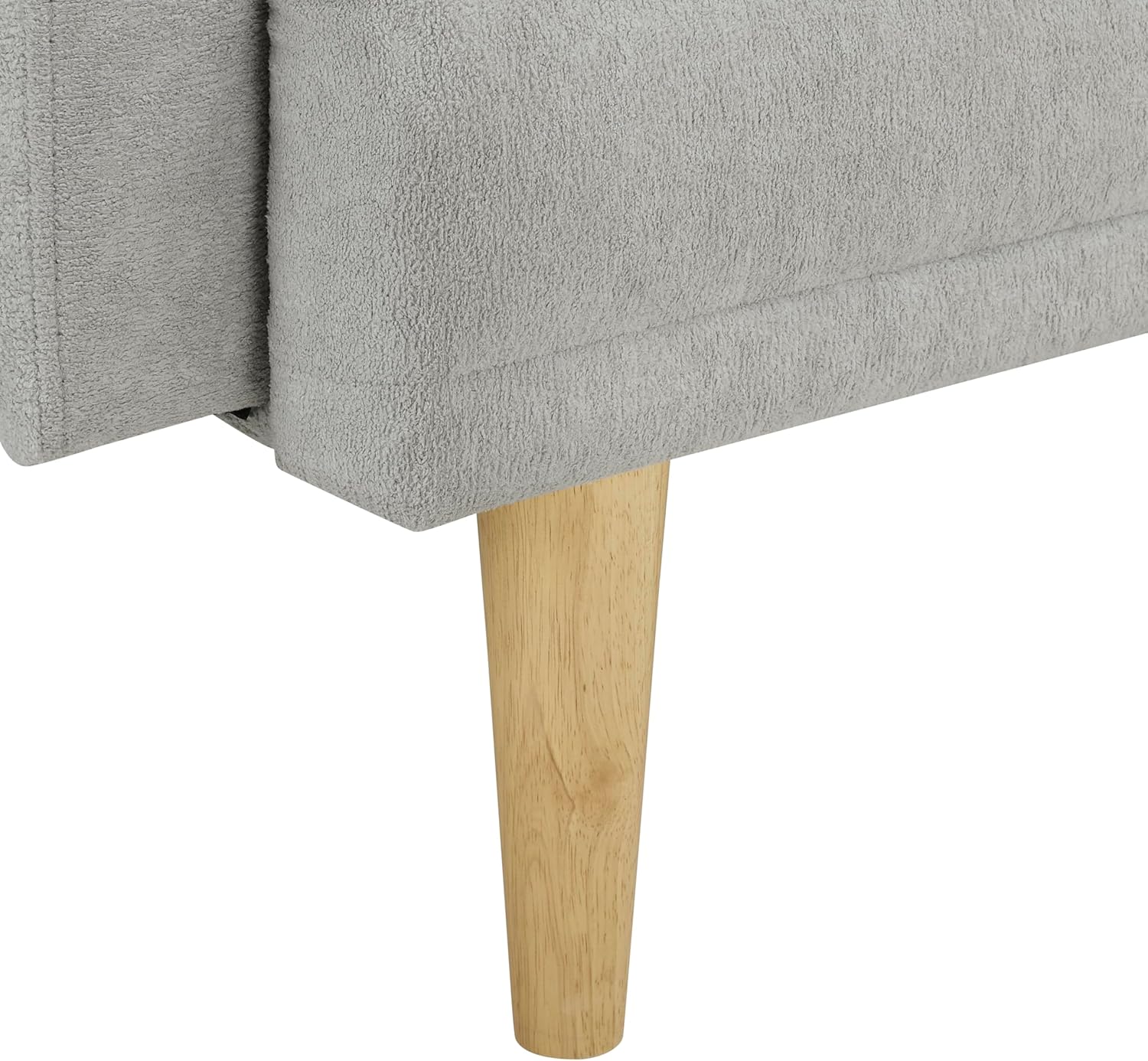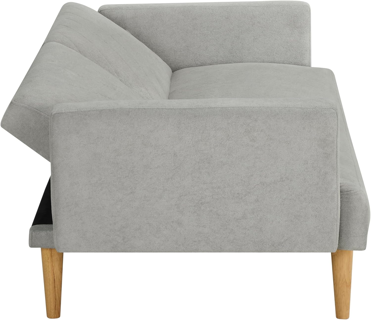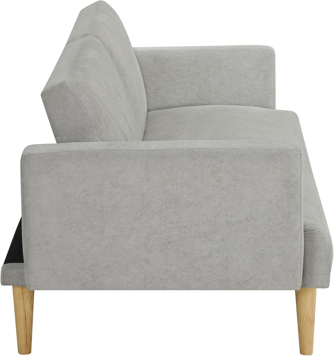 Loveseat Futon Sofa with Upholstered 2-Seater & Armrests, Converts to Single Bed for Small Spaces, Bedroom, Apartment, Home Office, Living Room, Tapered Wood Legs, Grey