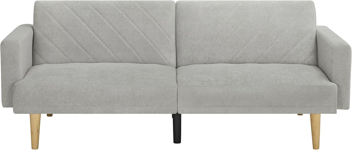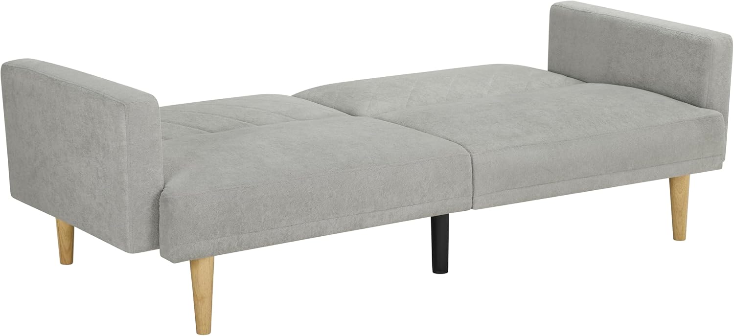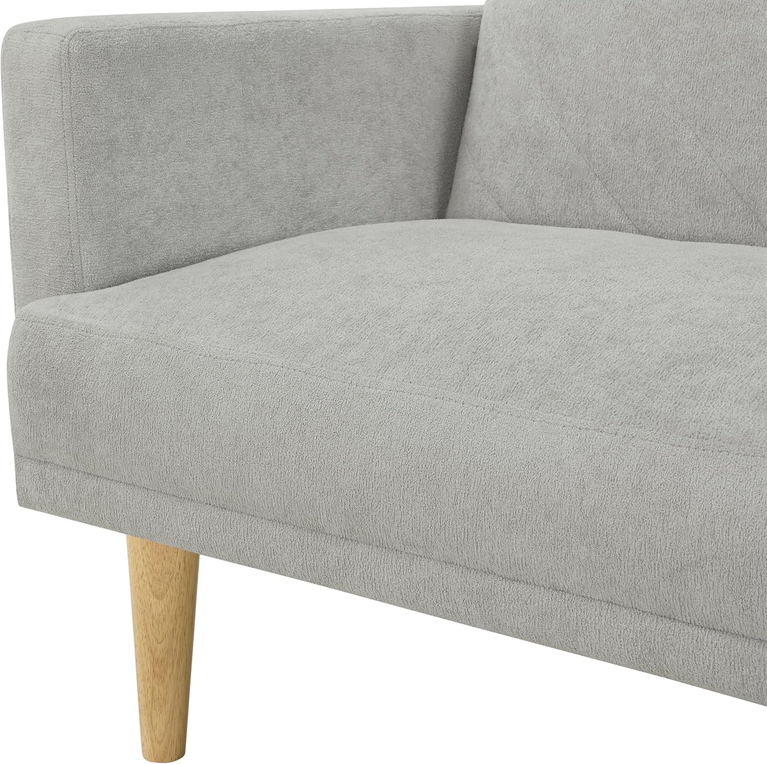 Loveseat Futon Sofa with Upholstered 2-Seater & Armrests, Converts to Single Bed for Small Spaces, Bedroom, Apartment, Home Office, Living Room, Tapered Wood Legs, Grey