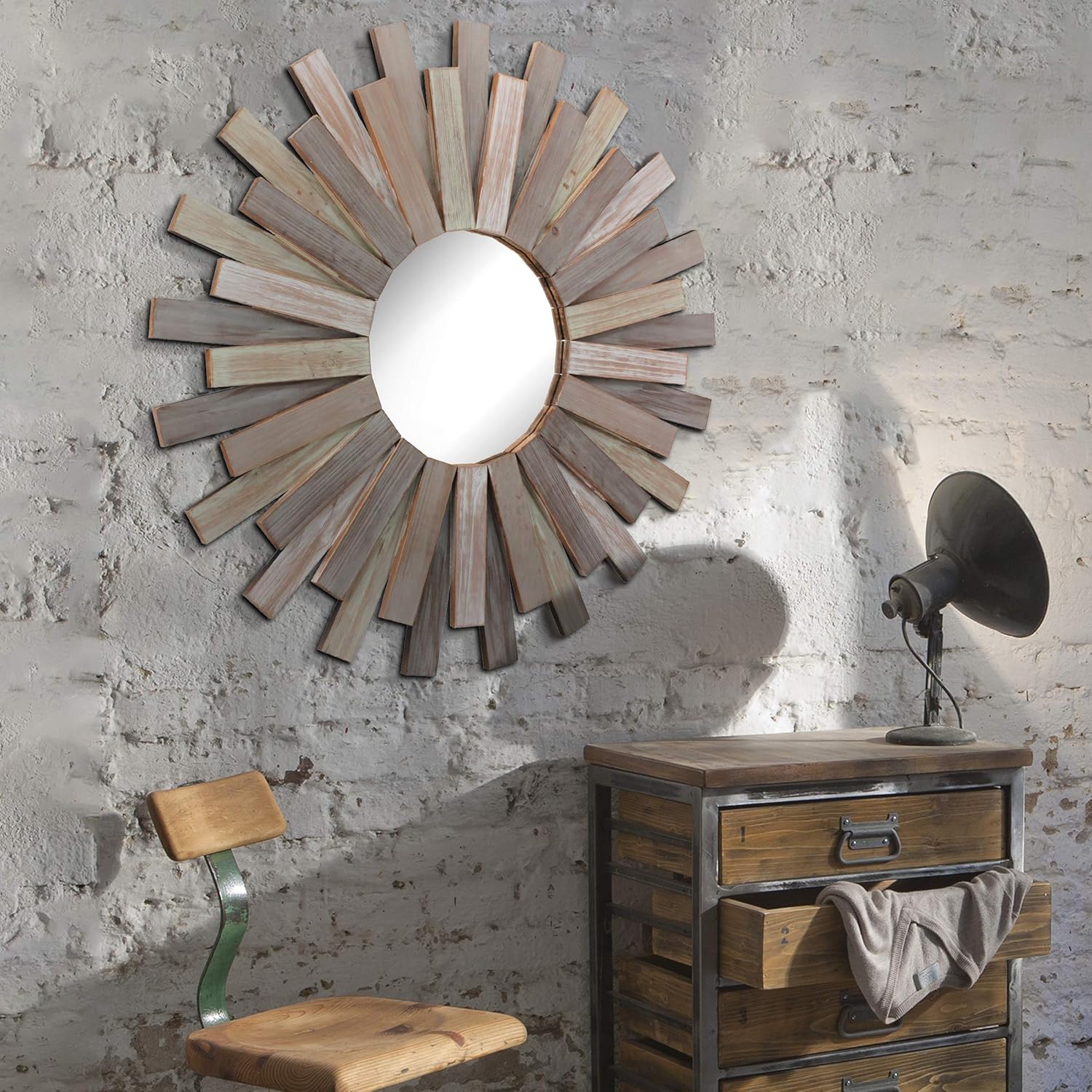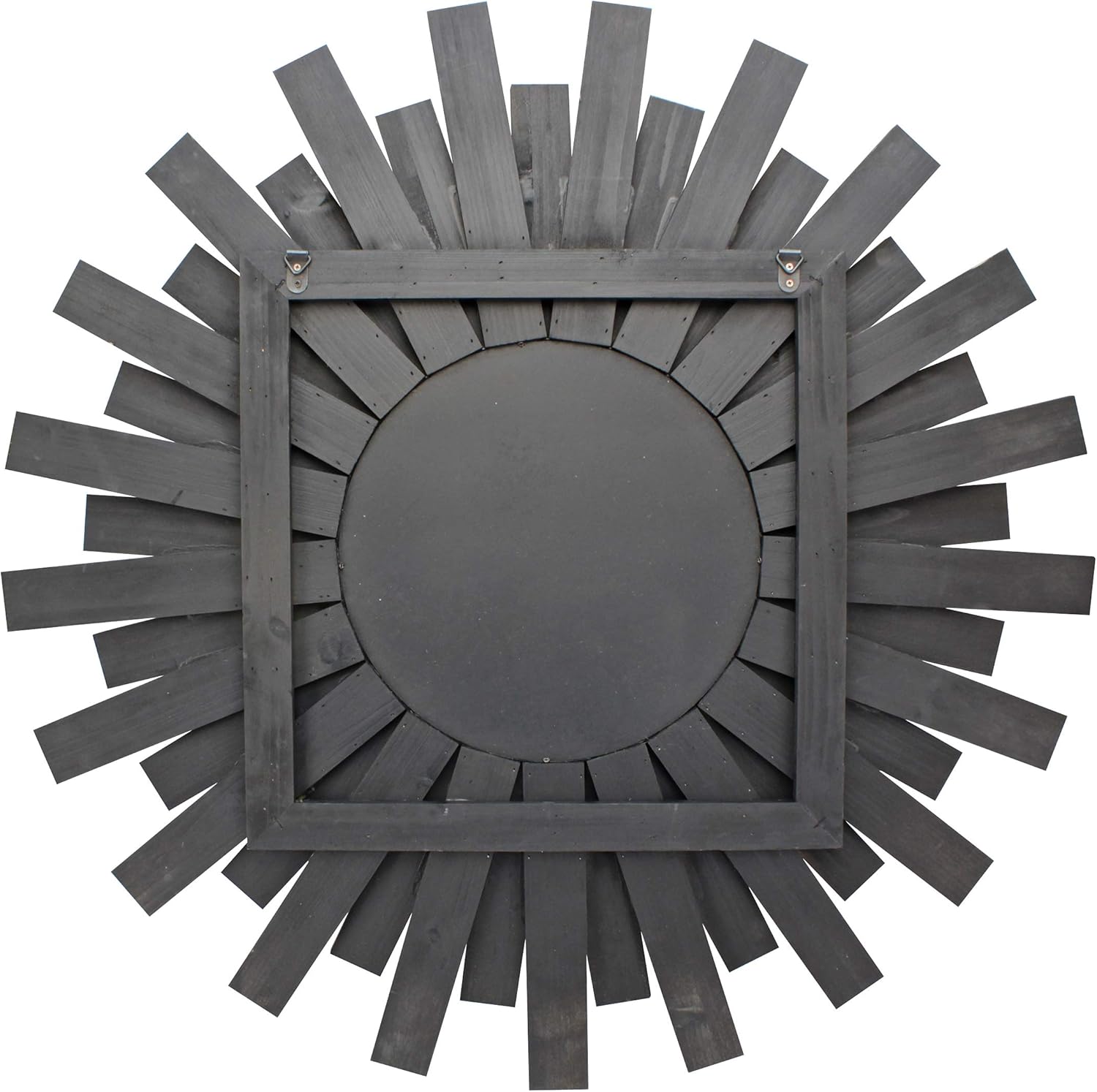Stonebriar Large Round 32" Wooden Sunburst Wall Mirror with Attached Hanging Bracket, Decorative Rustic Decor for the Living Room, Bathroom, Bedroom, and Entryway, Multi Color
