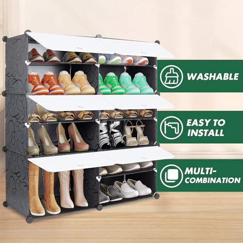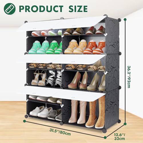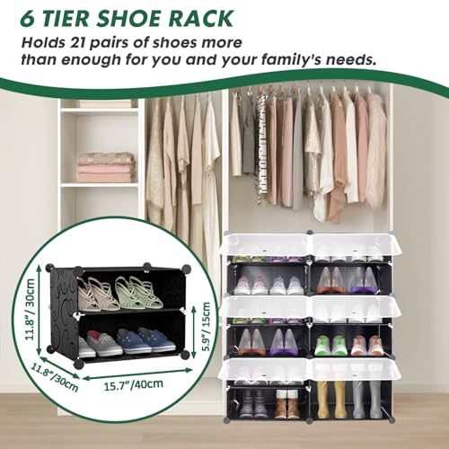 Shoe Rack - 6 Tier Shoe Storage Cabinet for 22 Pairs - Plastic Shoe Shelves Organizer for Closet, Hallway, Bedroom, Entryway (White)