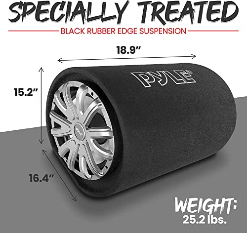 PyleUsa 10-Inch Carpeted Subwoofer Tube Speaker - 500 Watt High Powered Car Audio Sub Bass Enclosure System with 2” Aluminum Voice Coil, 4 Ohm, Rear Vented Design - PLTB101