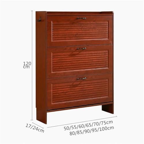 Shoe Rack Chinese Style Slim Shoe Cabinet, Freestanding Shoe Organizer with 3 Flip Drawers, Space Saving, Entryway Shoe Storage Cabinet with Side Hook(100 * 24 * 120Cm)