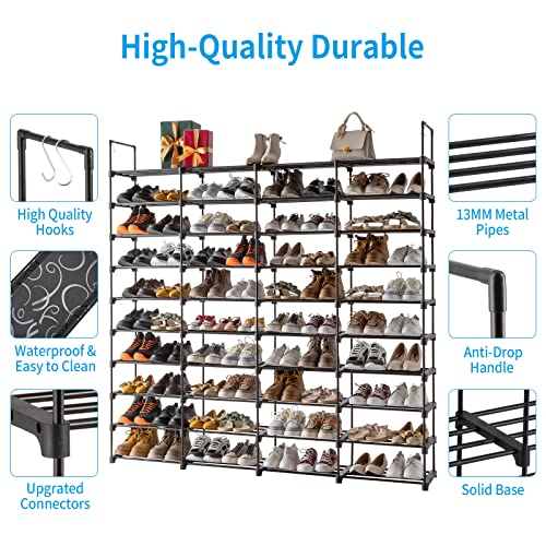 10 Tiers Shoe Rack Organizer Large Shoe Rack Holds 80 Pairs Shoe, Sturdy Metal Shoe Rack, Stackable Free Standing Shoe Racks for Entryway, Closet, Garage, Bedroom, Cloakroom, Space-Saving, Black
