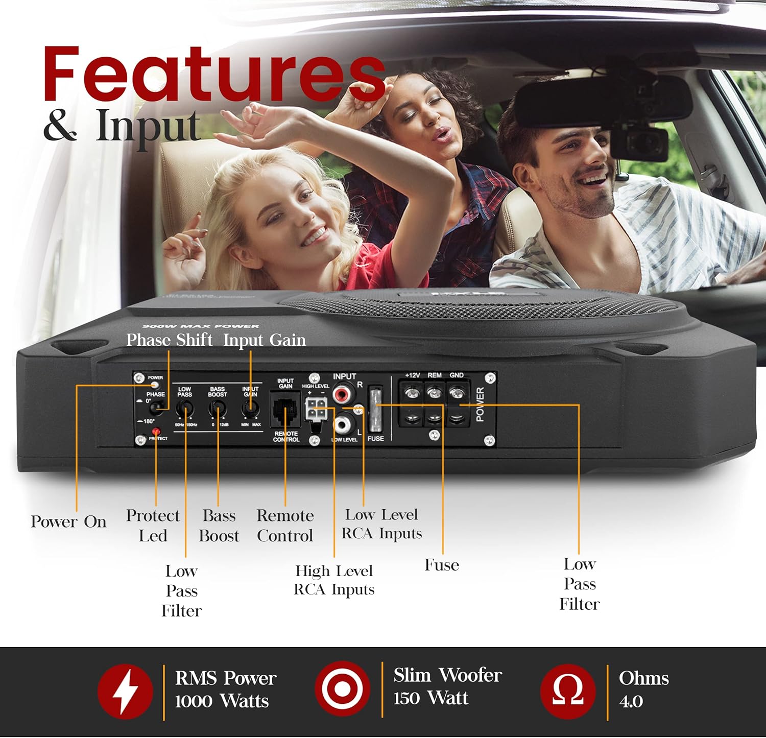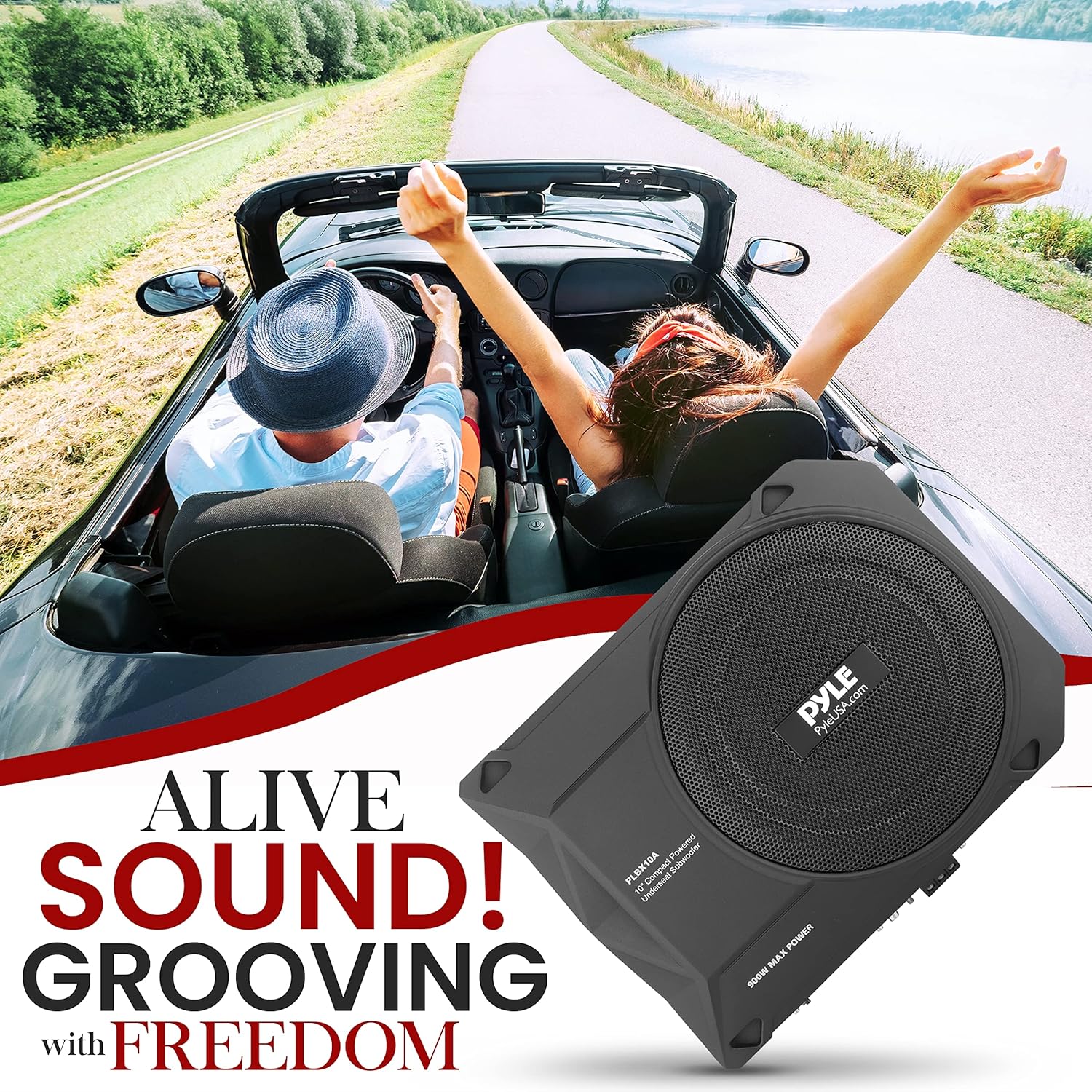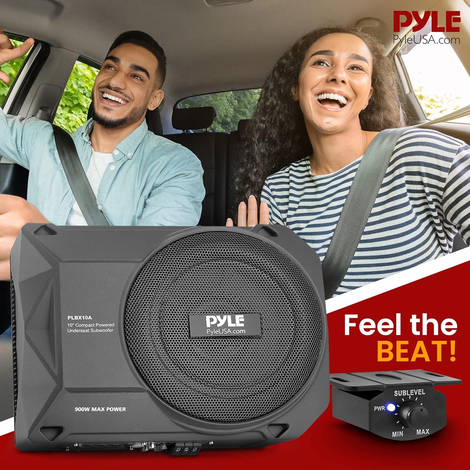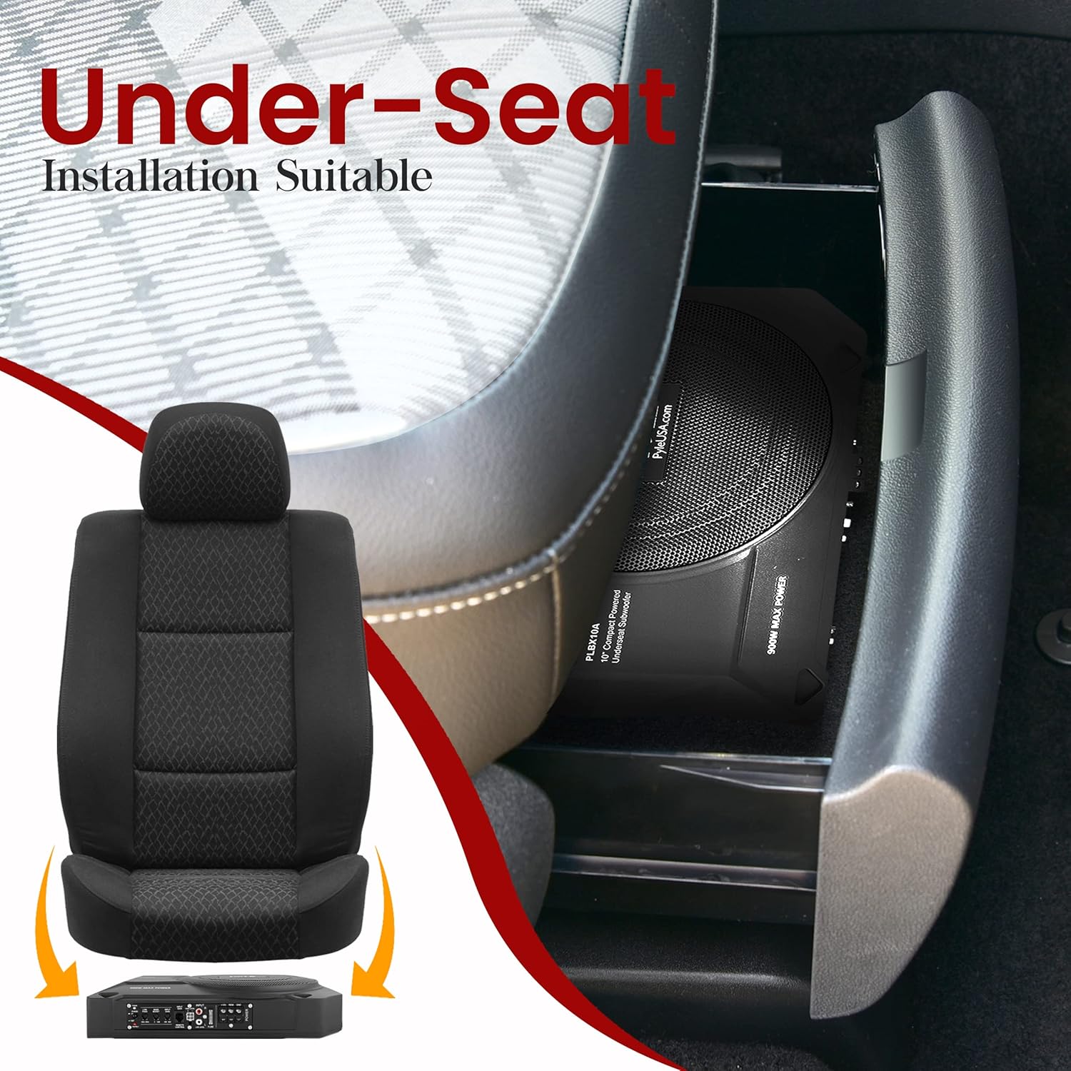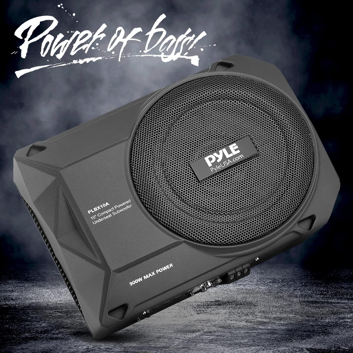 Pyle 10-Inch Low-Profile Amplified Subwoofer System - 900 Watt Compact Enclosed Active Underseat Car Audio Subwoofer with Built-in Amp, Powered Car Subwoofer w/Low & High-Level Inputs - PLBX10A