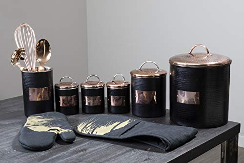 Premier Housewares Hammered Steel Storage Jar Biscuit Canister, 14x14x17cm, Black