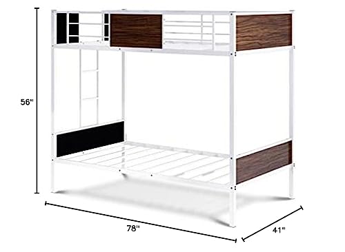 East West Furniture LYT0WHI Lynfield Twin Bunk Bed - Two Metal Beds with Two Steps Ladder and Guard Rails - Twin Over Twin Bunk Bed - White Powder Coating Color