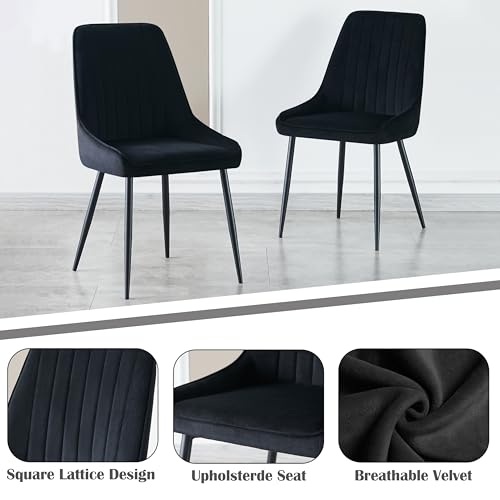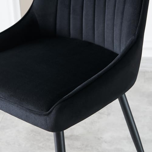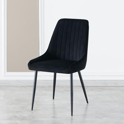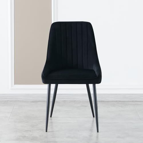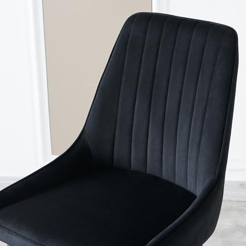 High Back Velvet Dining Chairs Armless Modern Kitchen Living Room Chair Ergonomic Metal Legs(Black,6)