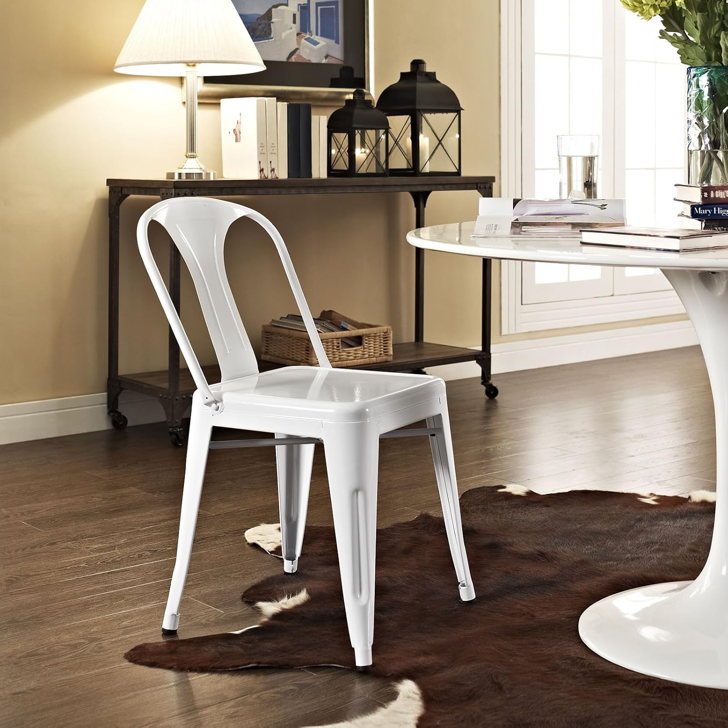 Modern Urban Contemporary Dining Side Chair, White Steel