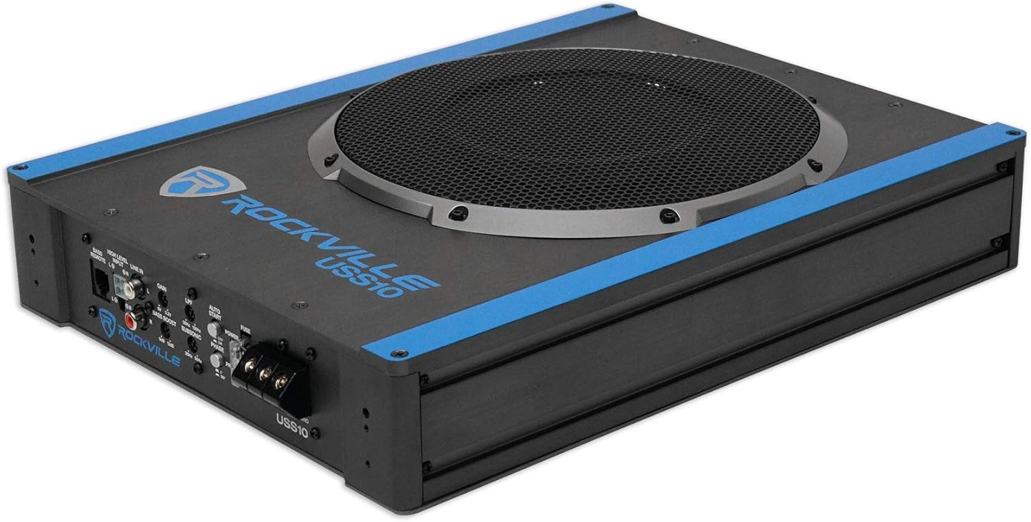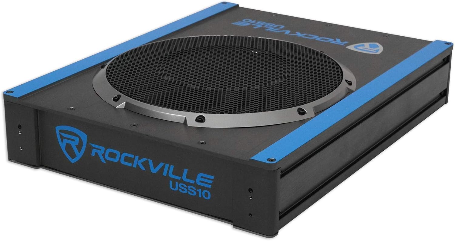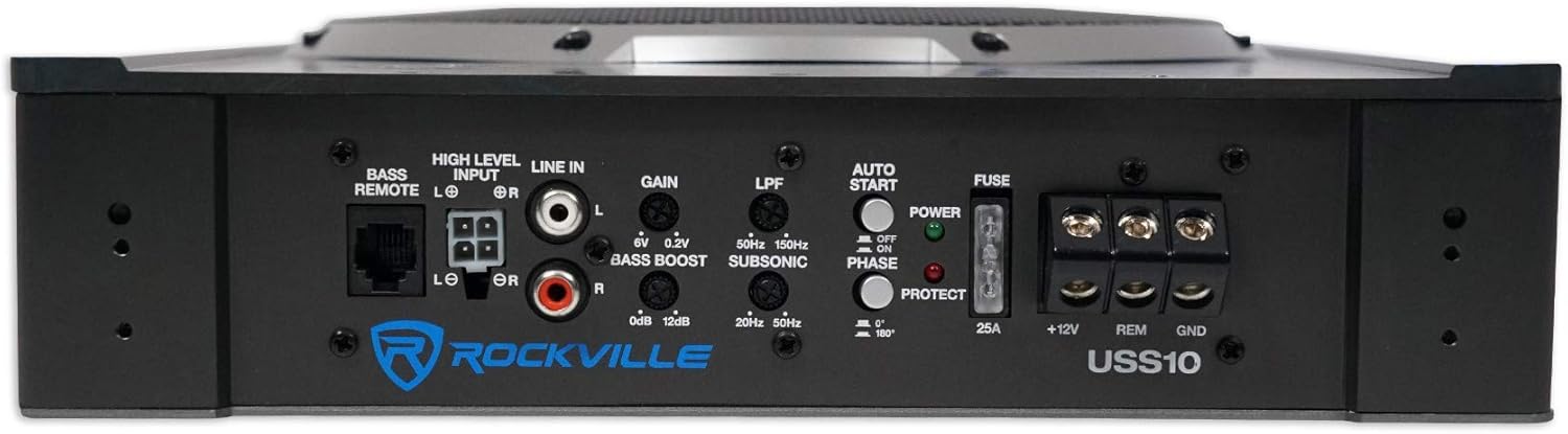 Rockville USS10 10" 800w Slim Under-Seat Active Powered Car/Truck Subwoofer Sub Black
