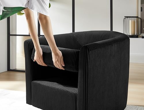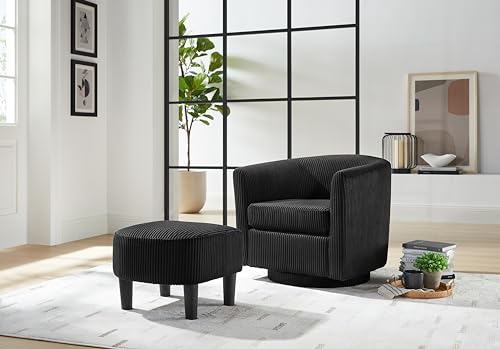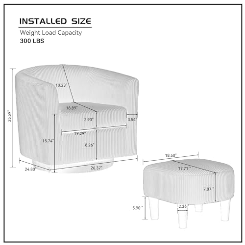 Swivel Accent Chair with Ottoman, Modern Upholstered Tufted Armchairs, 360 Degree Swivel Barrel Sofa Chair, Corduroy Fabric Round Tub Sofa Chair for Living Room White