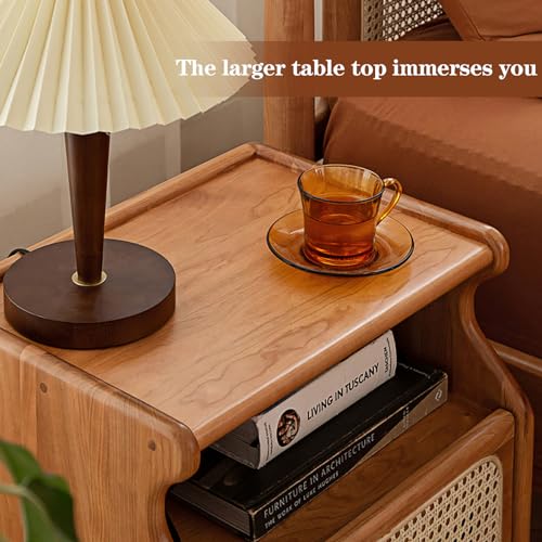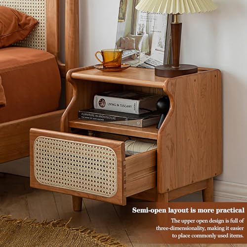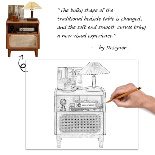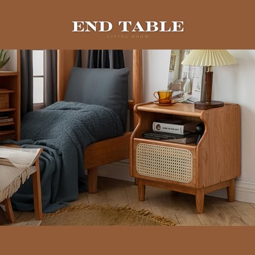 Modern Rattan Nightstand Set of 2, Cherry Wood End Table with Premium Imported Rattan & Hand-Sanded Edges (2)