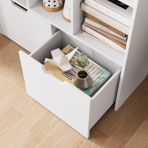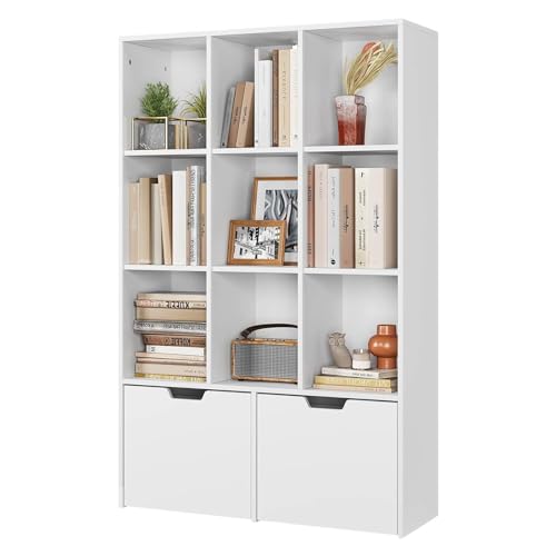 9 Cube Storage Organizer with Drawers, Dark Brown Bookshelf with Storage, Wooden 3-Tier Open Freestanding Shelf, for Kids Room, Living Room, Office, Bedroom