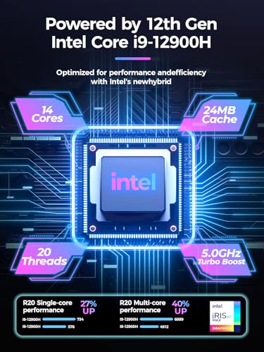 T1 Mini Gaming PC Core i9-12900H/RTX 3050Ti 8GB GDDR6, Mini Desktop Gaming Computer(14C/20T,Up to 5.4GHz)32GB DDR4,1TB PCIe 4.0 SSD/RGB Lights/WiFi 6E/BT 5.3/2x HDMI 2.0/USB-C/4K@60Hz/Win11 Pro