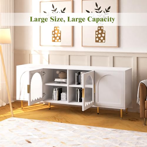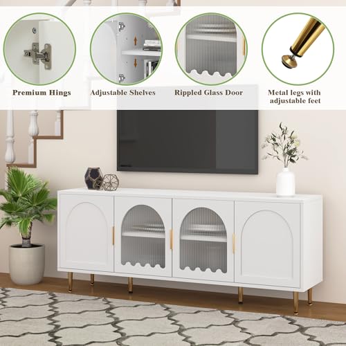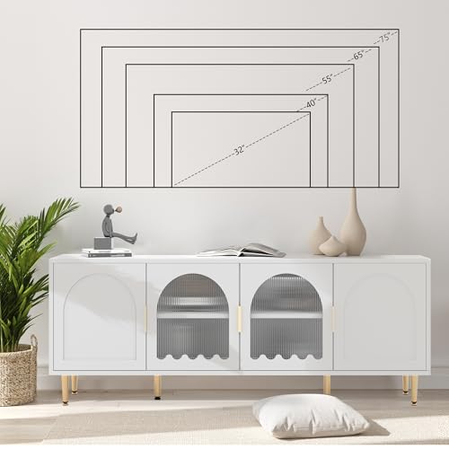TV Stand for 65 70 75 80 Inch TV, Large Black Glass Entertainment Center with Storage & Bookshelves, Mid Century Modern Media Console Table for Television, Under TV Cabinet for Living Room,Bedroom
