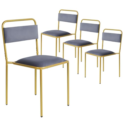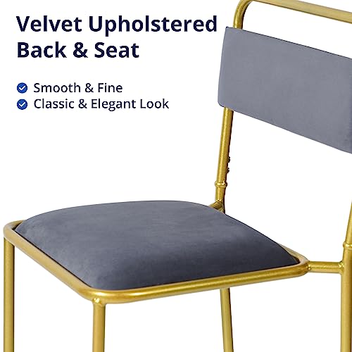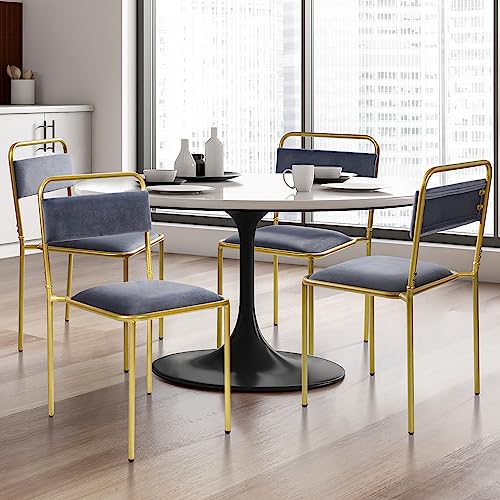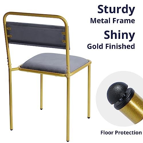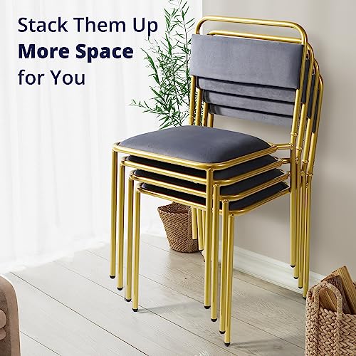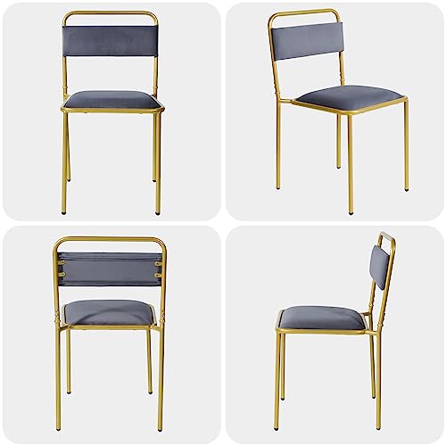 Cozy Castle Dining Chairs Set of 4, Velvet Upholstered Kitchen Chairs, Mid-Century Modern Stackable Chairs with Gold Legs, Grey