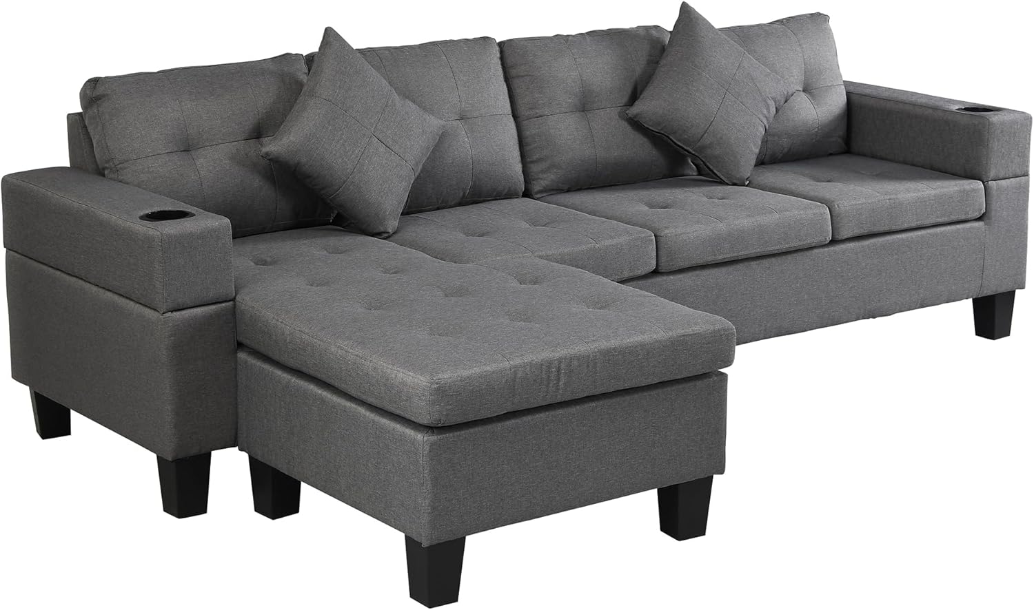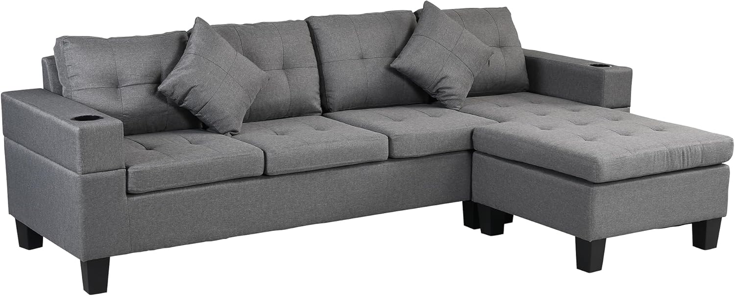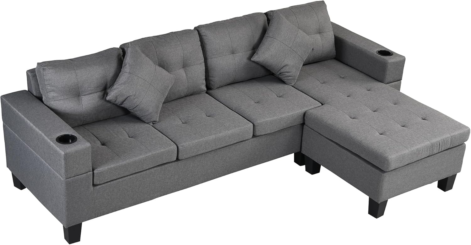 Sectional Sofa Set for Living Room with L Shape Chaise Lounge,cup holder and Left or Right Hand Chaise Modern 4 Seat