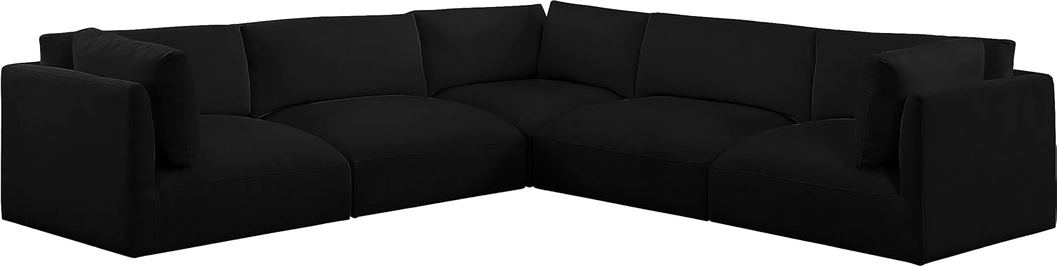 Meridian Furniture Ease Collection Modern | Contemporary Upholstered Sectional with Soft Fabric, Modular, 114" W x 76" D x 30" H, Black