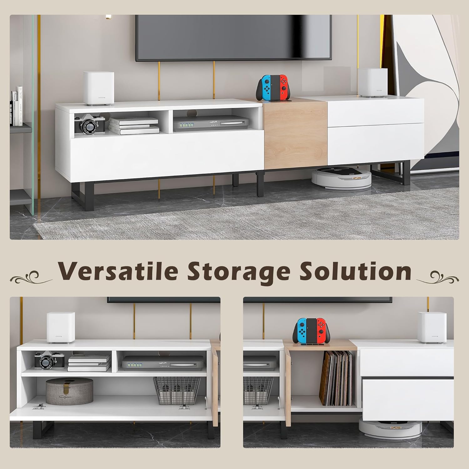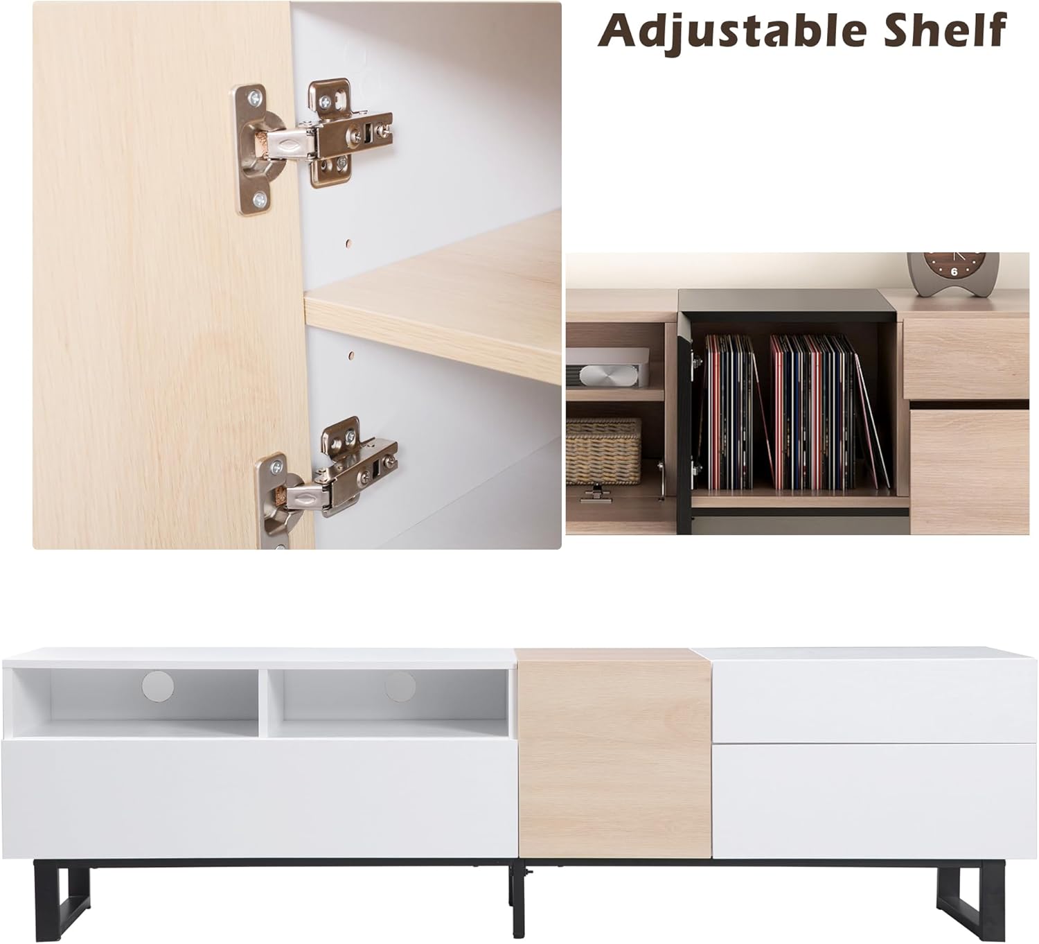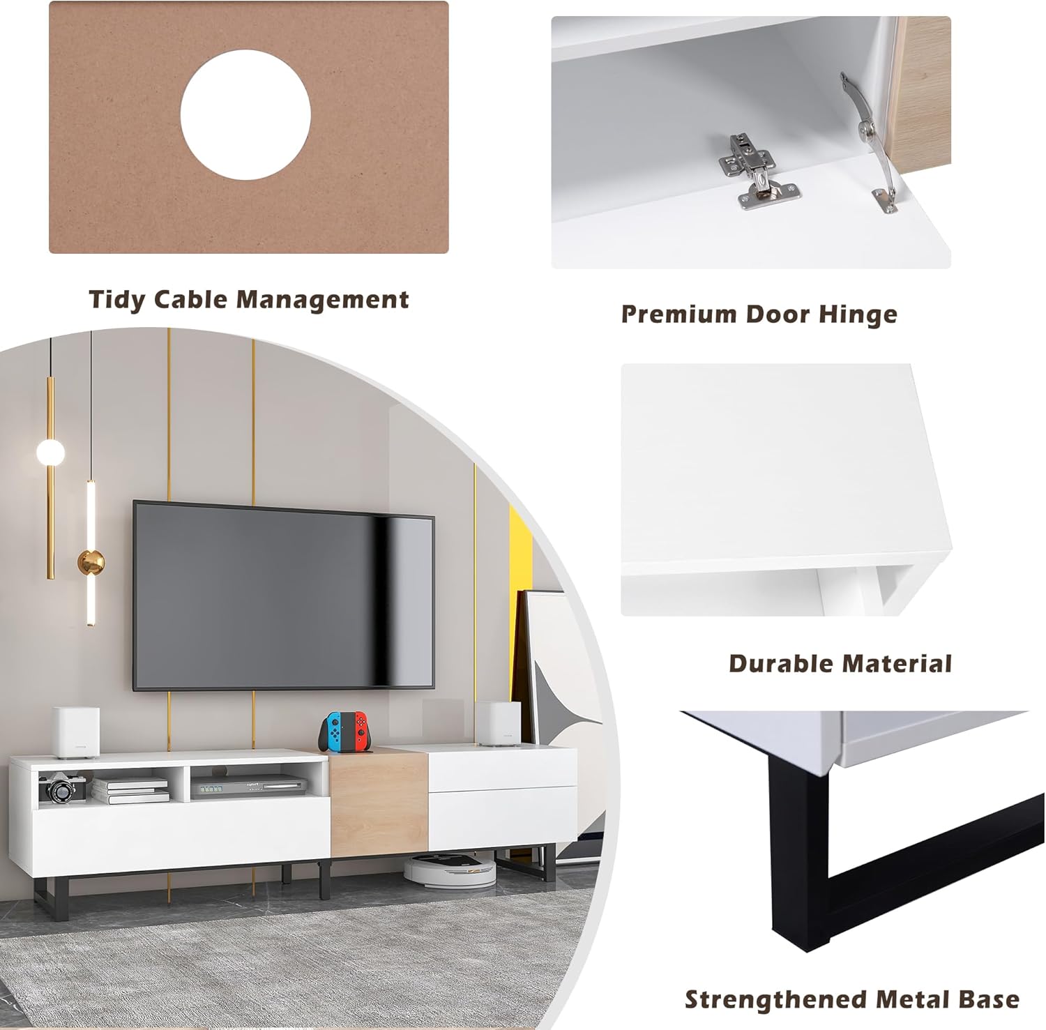 LZ LEISURE ZONE Modern TV Stand for Up to 80 Inch TV, Two-tone Media Console Entertainment Center with Storage, TV Console Table with Drawers and Open Compartments for Living Room/Bedroom, White