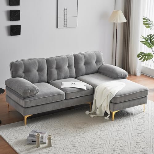 KIVENJAJA 83” L Shaped Sectional Couch, Mid Century Modern Velvet Small Sofa with Left Chaise & Tufted Backrest for Living Room Apartment Office, Blue