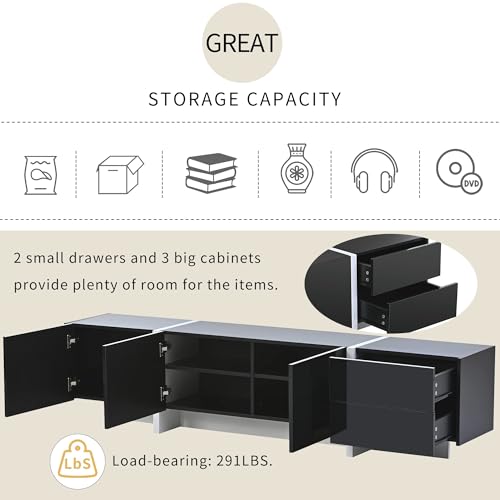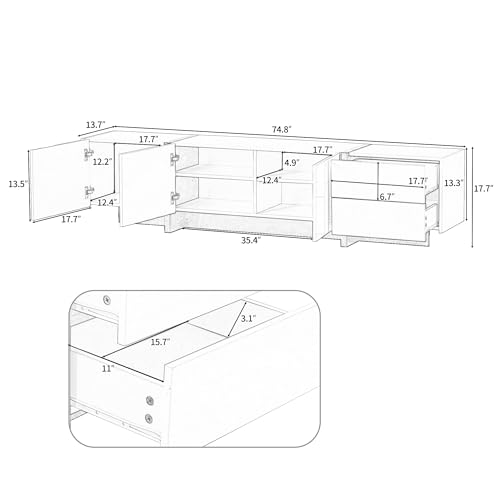 Contemporary Rectangle Design TV Stand for Television Up to 80 Inch, Unique Style Console Table, Modern Storage Cabinet with High Gloss UV Surface for Living Room 74.8 Inch Length