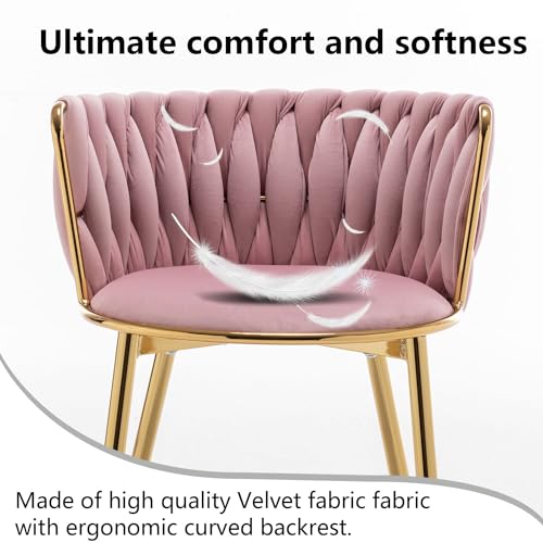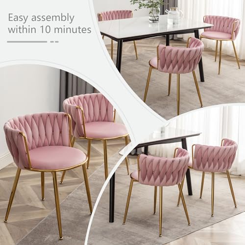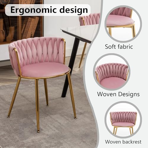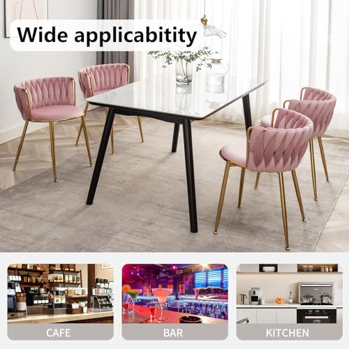 Velvet Dining Chairs Set of 4, Modern Dining Chair with Gold Metal Legs, Weaving Upholstered Dining Room Chairs for Dining Room, Kitchen, Vanity (Grey)