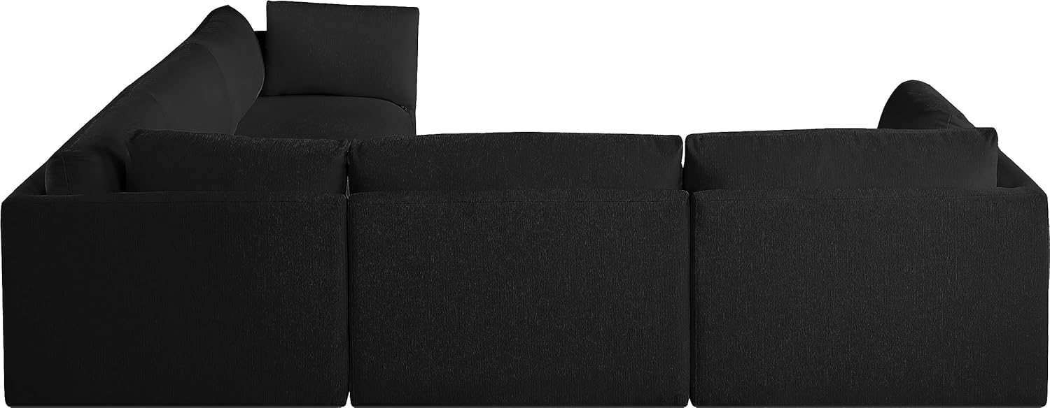 Meridian Furniture Ease Collection Modern | Contemporary Upholstered Sectional with Soft Fabric, Modular, 152" W x 76" D x 30" H, Black