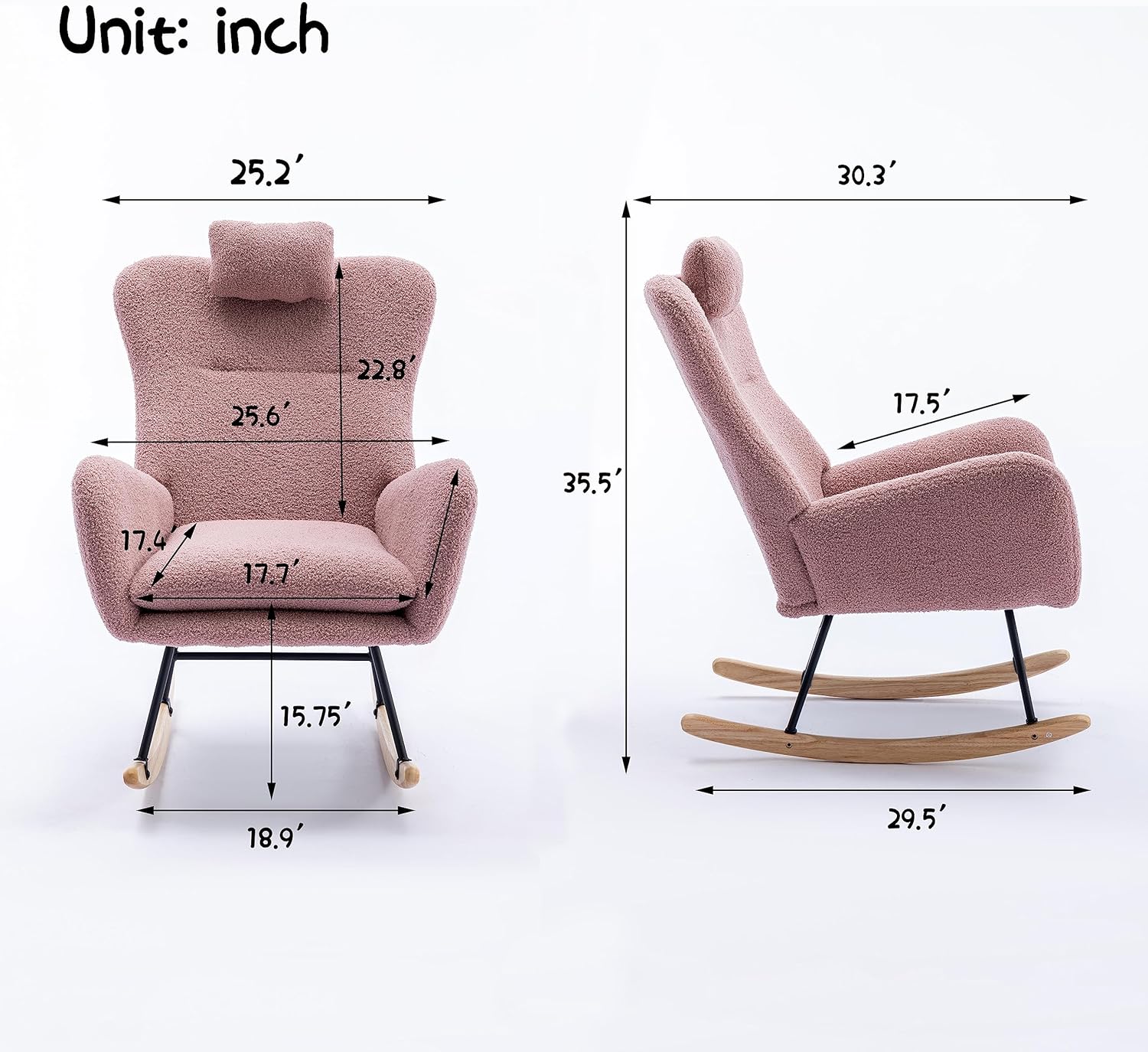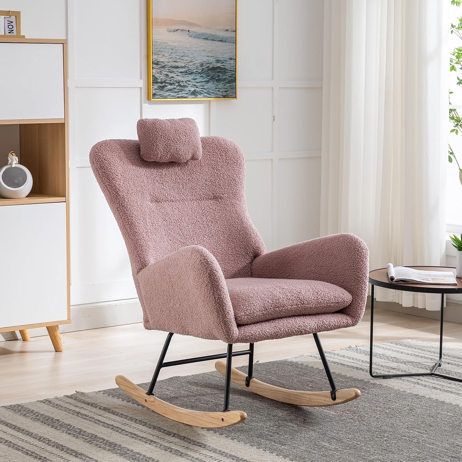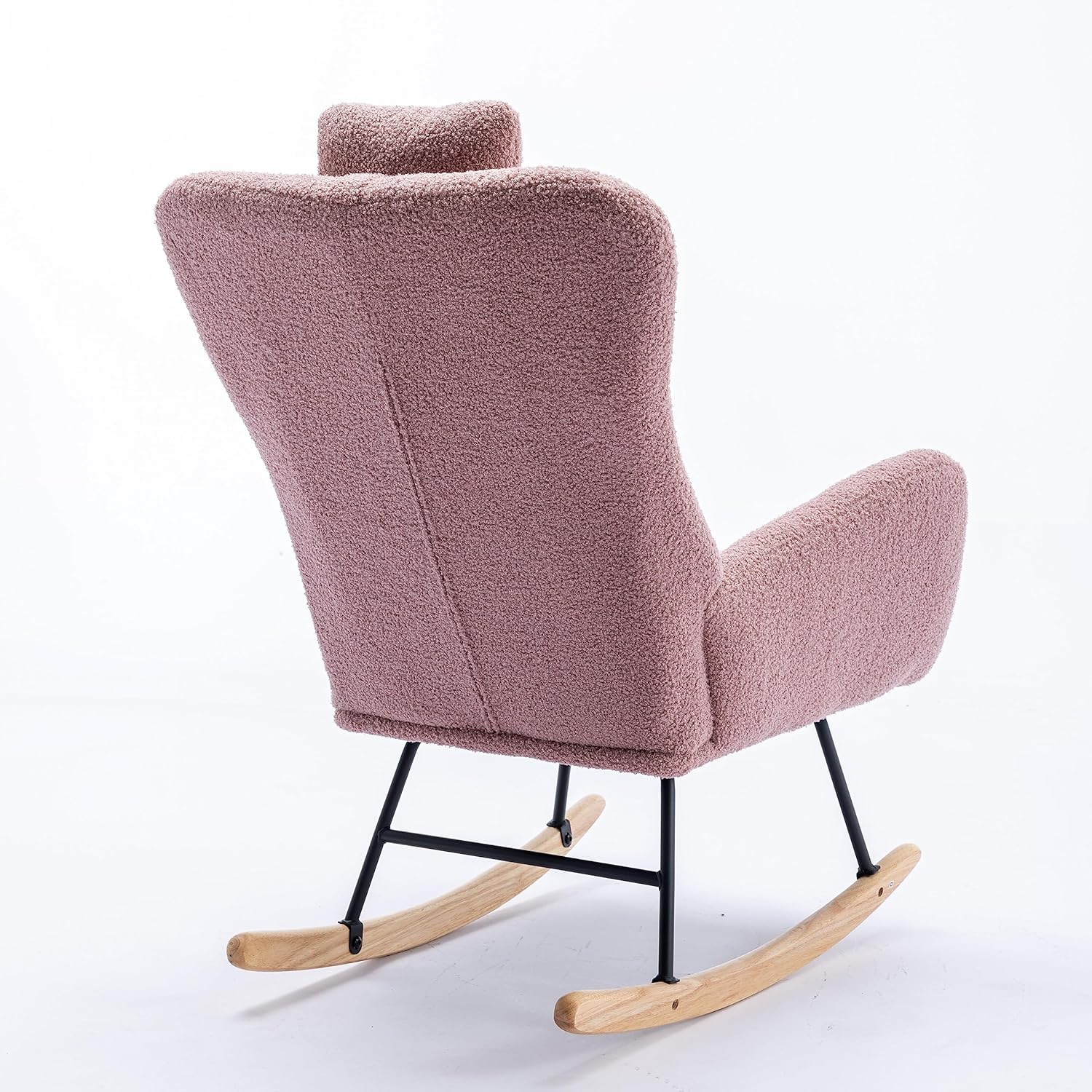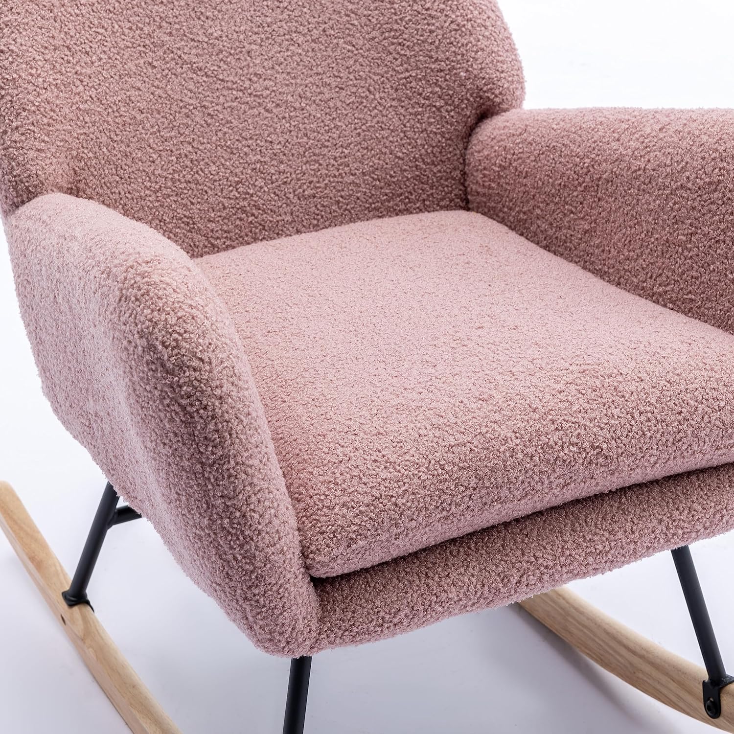 Modern Teddy Velvet Rocking Chair for Nursery, Rocker Glider Chair with Armrests, Upholstered Accent Chair with High Backrest, Tufted Wing Back Comfy Armchair for Bedroom/Living Room