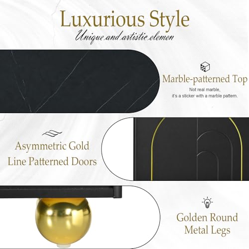 TV Stand for Up to 80 Inch TV, Modern Handlefree Entertainment Center with Storage Cabinets and Adjustable Shelf, Media TV Console Table with Marble Top and Round Gold Legs for Living Room