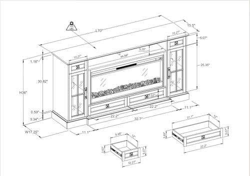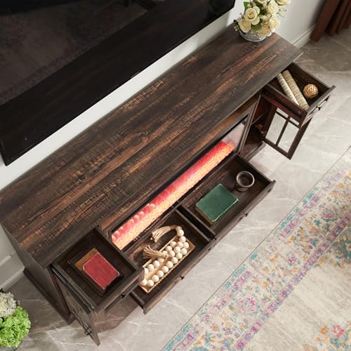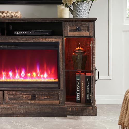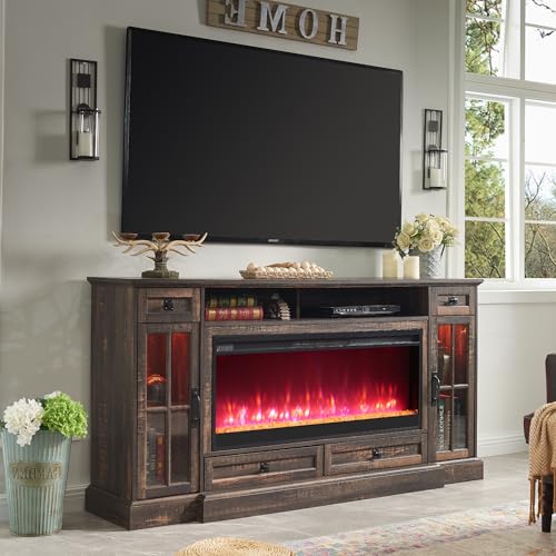 RedLemon Farmhouse Fireplace TV Stand for 80 Inch TV, 36" Tall Entertainment Center with 42" Crystal Eletric Fireplace, Modern Media Console Table with LED Lights for Living Room, Antique White