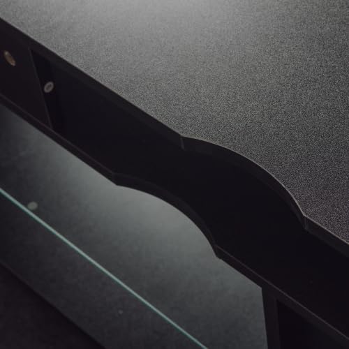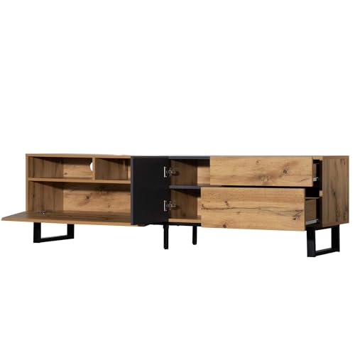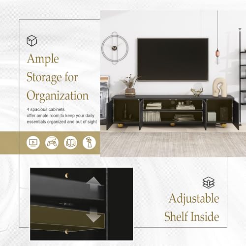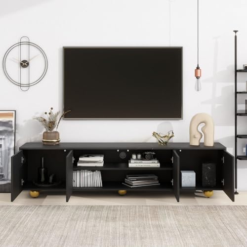 Modern TV Stand for 80 Inch TV with Double Storage Space, Wooden Entertainment Center with Open Shelves, TV Media Console Table with Drop Down Door for Living Room (Black)