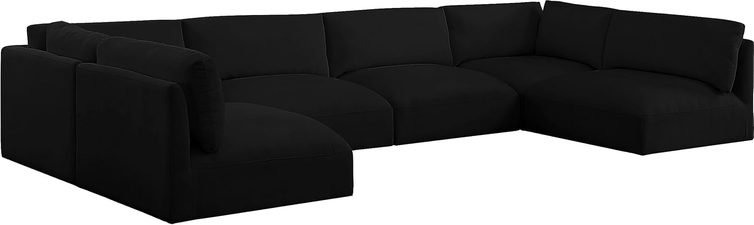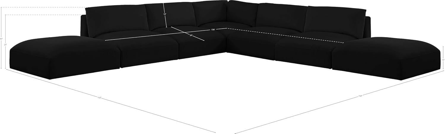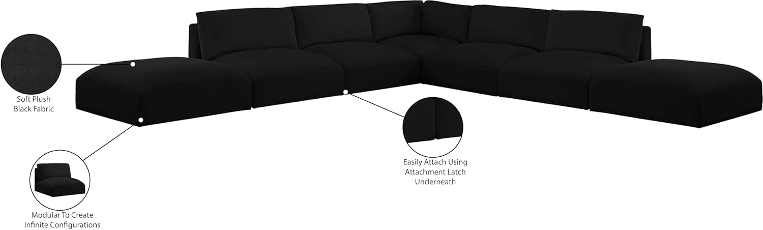 Meridian Furniture Ease Collection Modern | Contemporary Upholstered Sectional with Soft Fabric, Modular, 152" W x 114" D x 30" H, Black