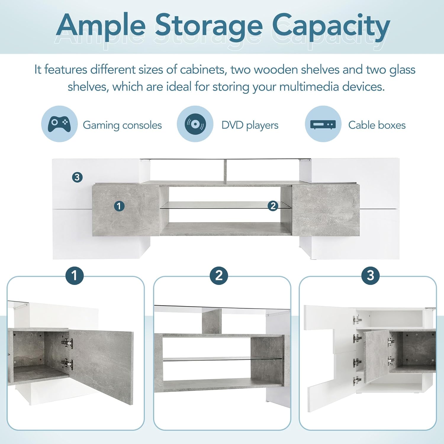 Modern TV Stand for TVs up to 80 Inch, Wooden Entertainment Center with 3 Large Storage Cabinets & Open Shelves, Media TV Console Table for Living Room,Bedroom, White