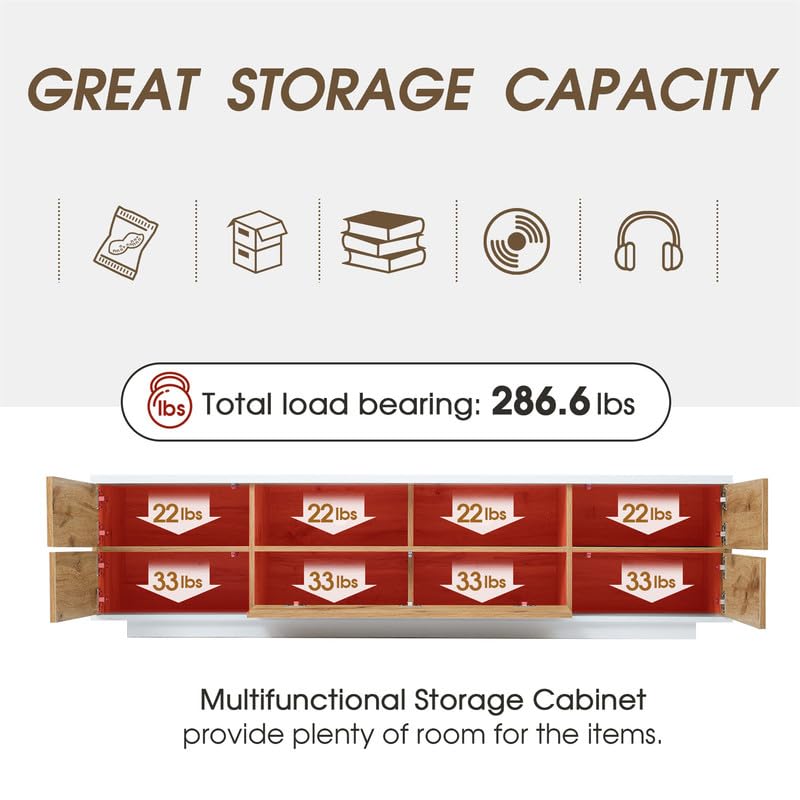 TV Stand up to 80", TV Stands for Living Room Entertainment Center with 8 Cabinet and Door Rebound Device, Modern TV Stand with Storage in MDF, TV Console Table Media Cabinet for Bedroom, Natural