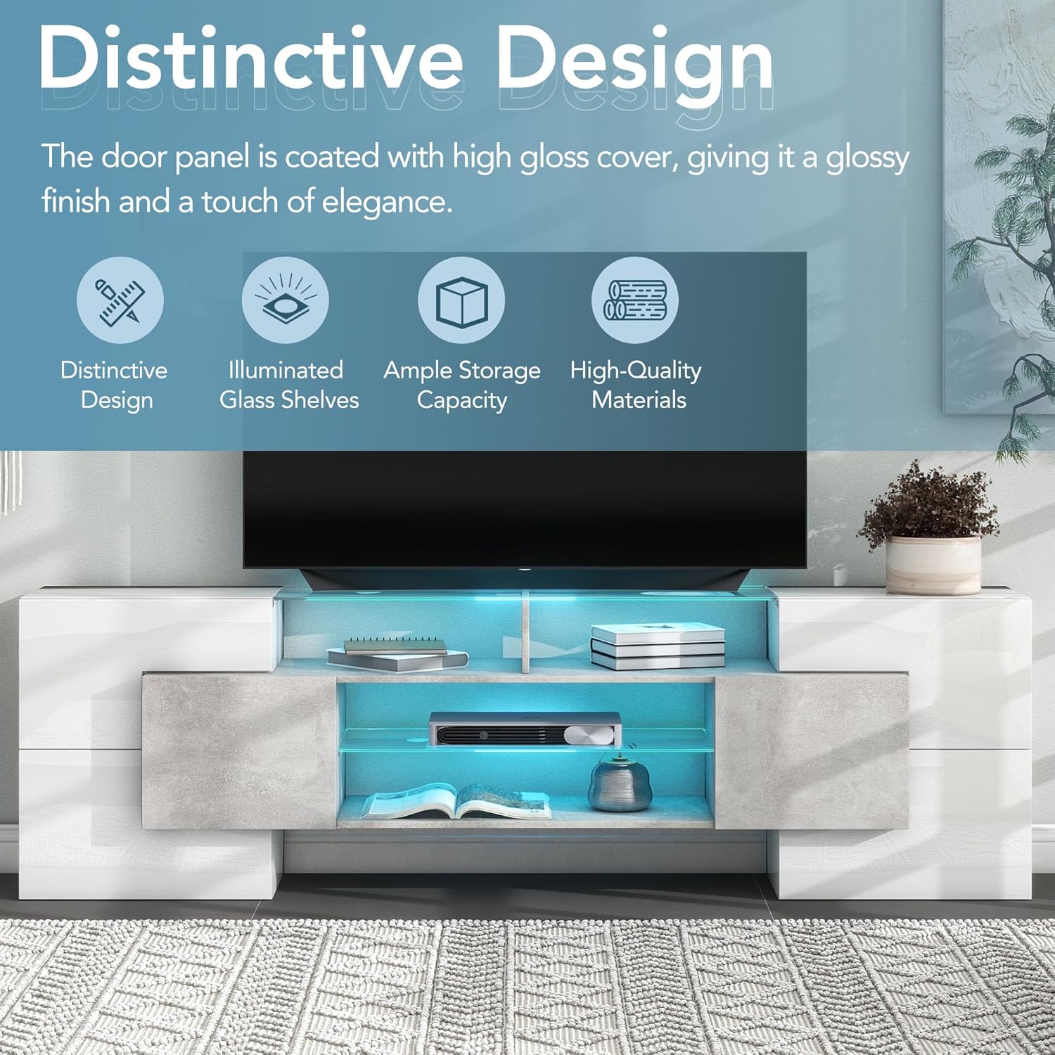 79 Inch Whtie TV Stand Entertainment Centre with 2 Glass Shelves,High Gloss Media Console Table for TVs Up to 80",Versatile TV Cabinet with LED Color Changing Lights for Living Room