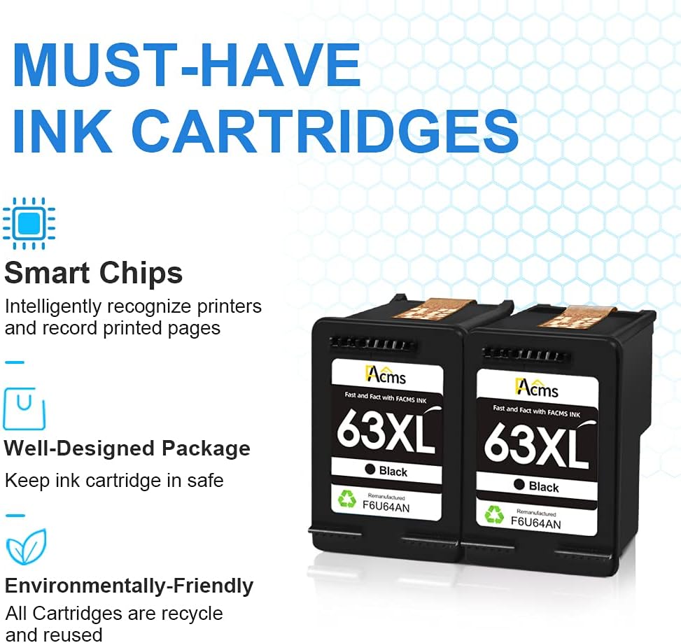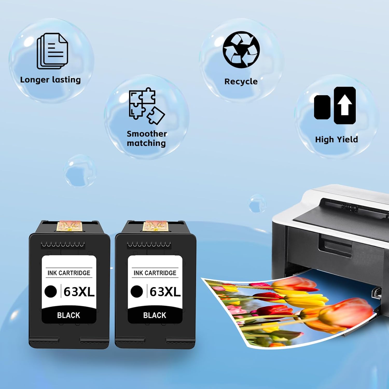63XL Black Ink Cartridge Replacement for HP 63 63XL Ink Cartridges Combo Pack Fit for HP Envy 4520 4512 Officejet 3830 4650 5258 5255 4655 3833 Deskjet 1112 3631 Printer 63 63XL ink Cartridge 2 Black