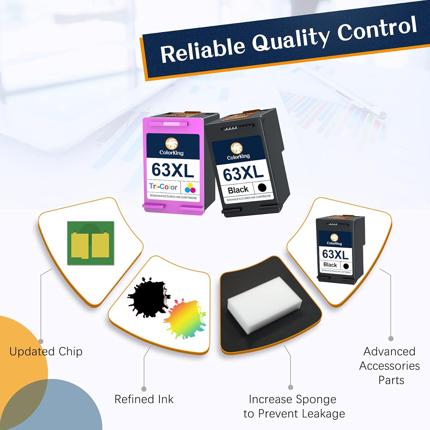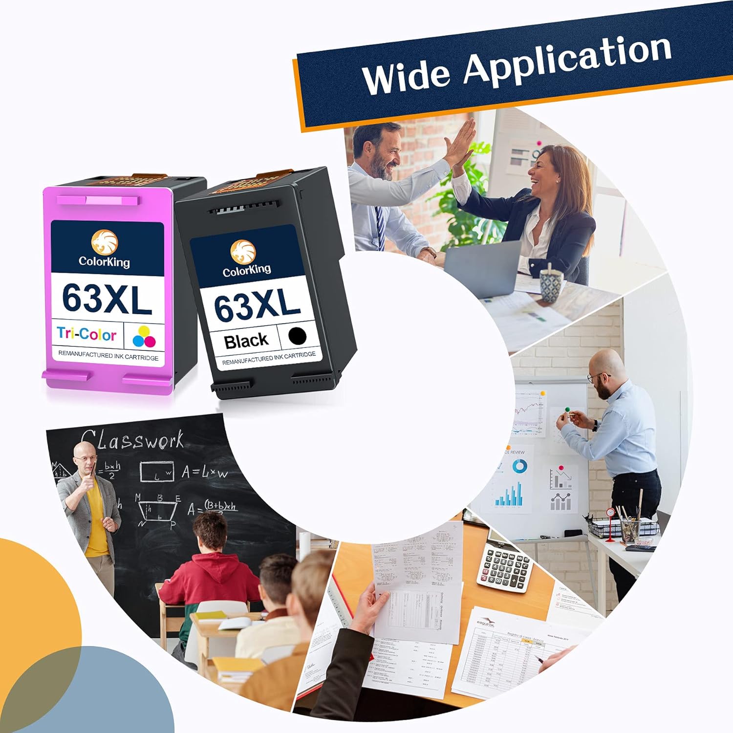 ColorKing 63XL Ink Cartridges Black and Color Cmpatible for HP Ink 63 Ink Cartridges Combo Pack for HP OfficeJet 3830 4650 4652 4655 5255 5258 Envy 4520 4512 DeskJet 2130 3630 Printer