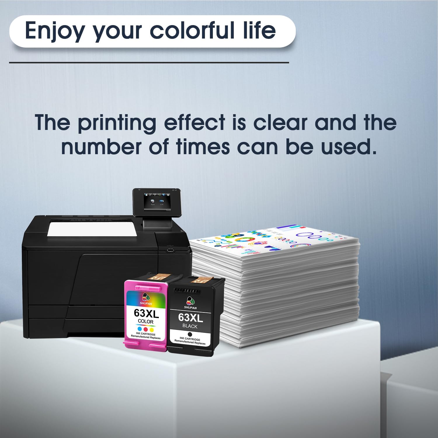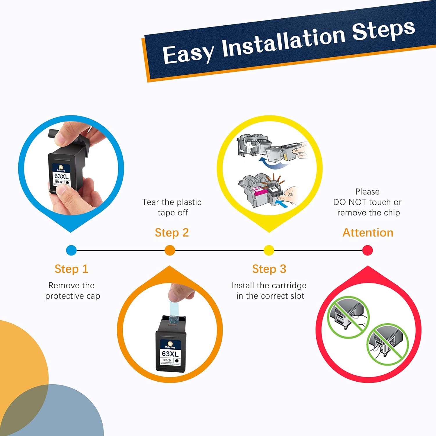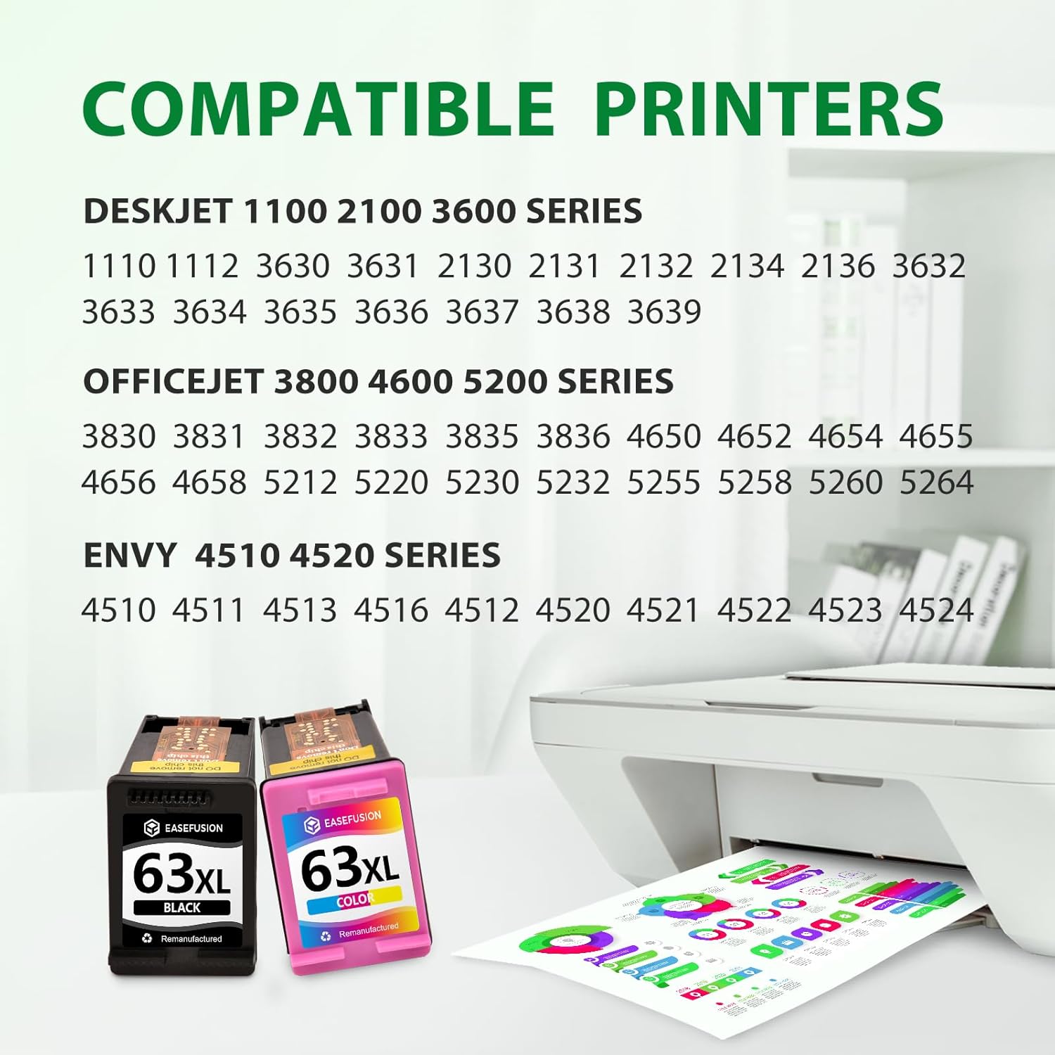 63XL Ink Cartridges High Yield Compatible Replacement for HP Ink 63 Black and Color Combo Pack Works with Officejet 3830 Envy 4520 4650 5255 5200 5258 4655 Deskjet 1112 Inkjet (Black and Color)