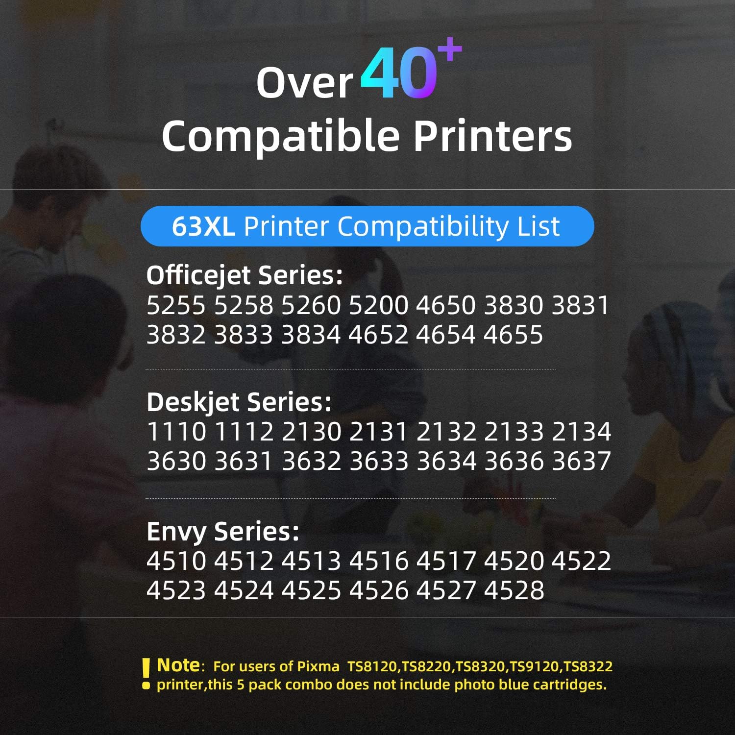 63 XL High Yield Ink Cartridge Combo Pack Replacement for HP 63 Ink; for HP Envy 4520 4512 4516; Officejet 3830 4650 4655 5200 5255 5252 5222;Deskjet 1112 2130 2132 3630 Printer (Black and Tri-Color)