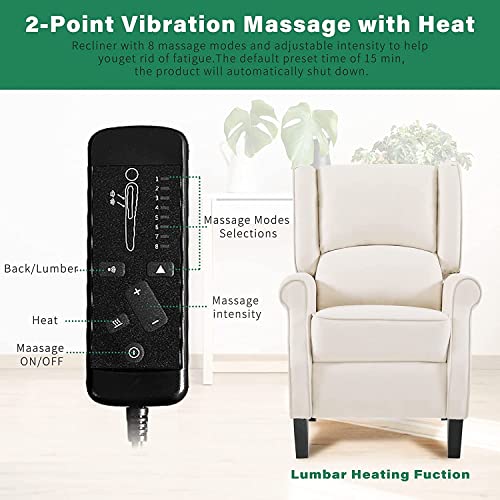 Amazon Brand- Set of 2 Wingback Recliner Chair with Massage and Heat- Accent Chair Push Back Chair for Living Room Bedroom(Beige)